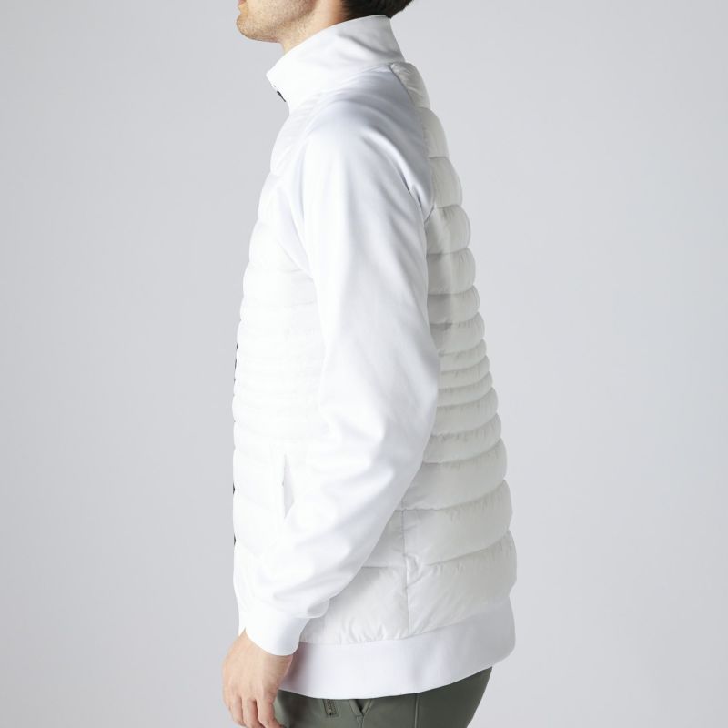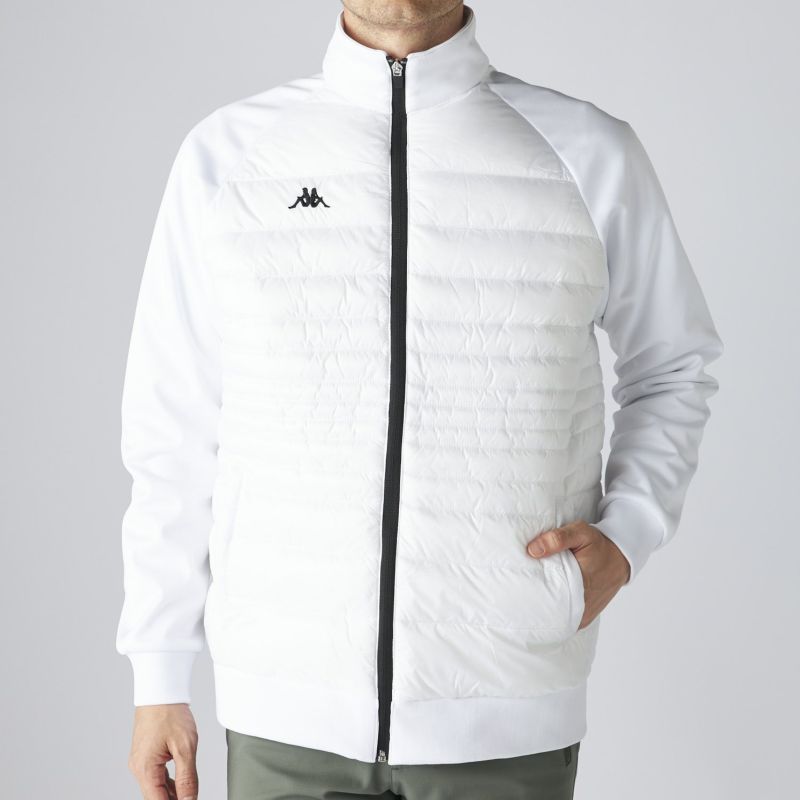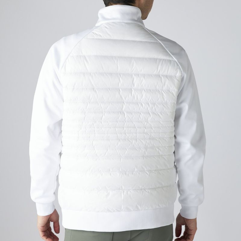 袖部と胴部の素材を切り替えスイングしやすい機能性を持たせた防寒アウター。