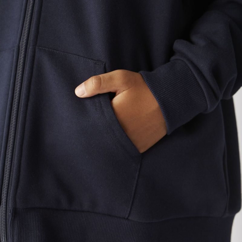 打ち込みのしっかりした厚みのある素材を使用したジップパーカー。