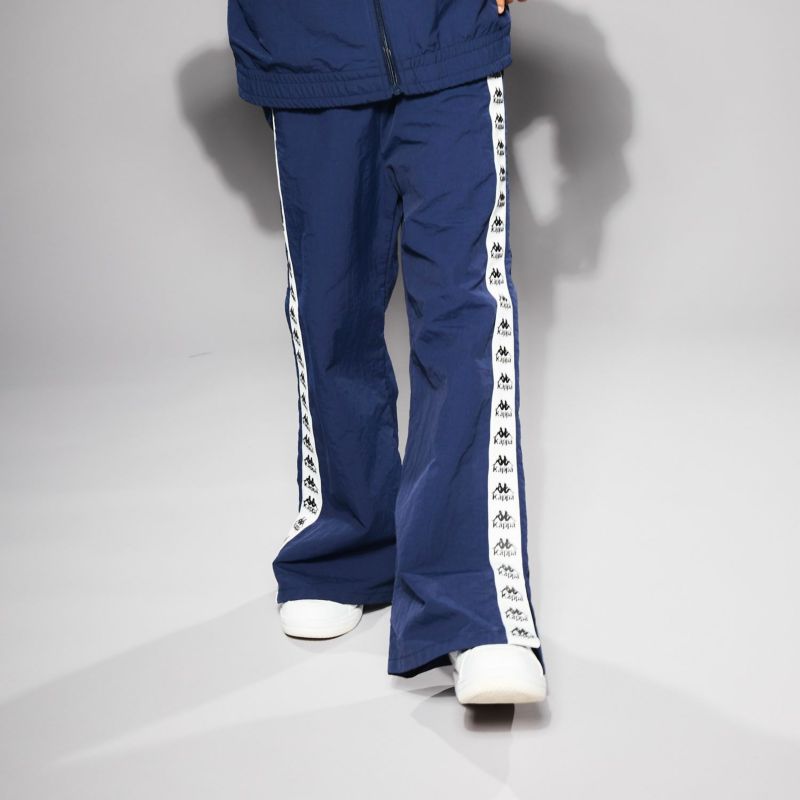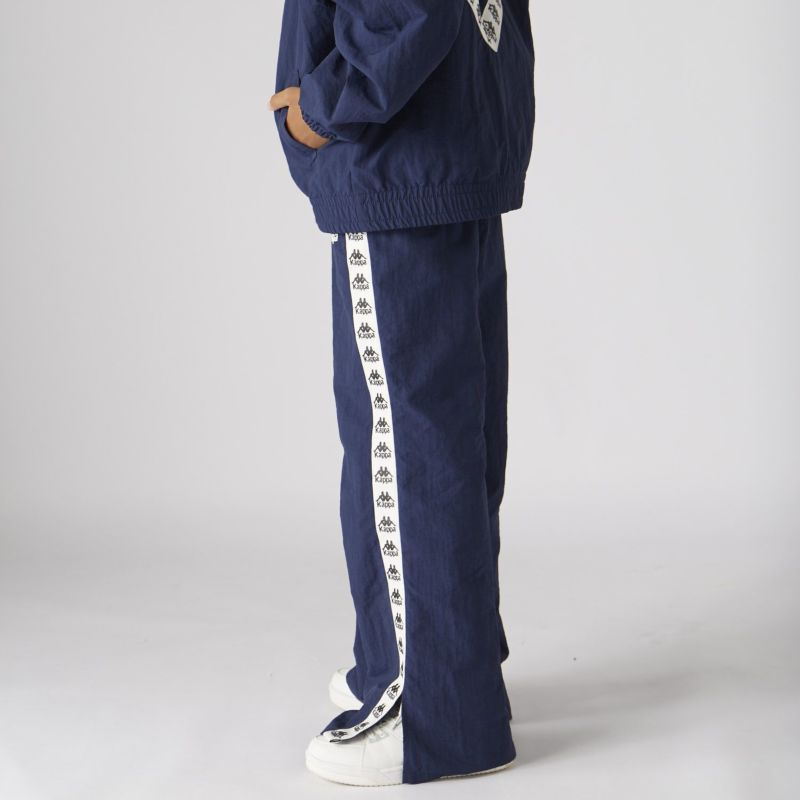 トレンドのスポーツミックスでこなれ感のあるナイロン素材のロングパンツ。