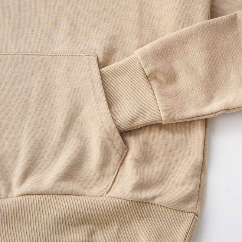ベーシックカラーのシンプルなパーカーはどんなアイテムとも相性が良く、性別問わず着用できるアイテムです。