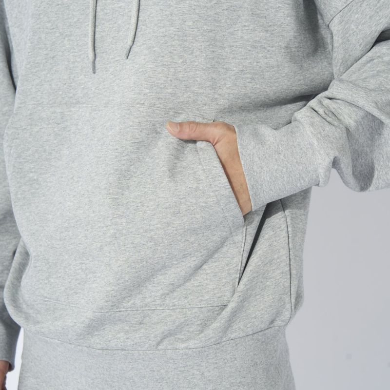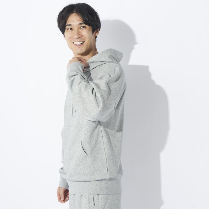 肉厚の素材感が特徴の裏毛のスウェットパーカー。