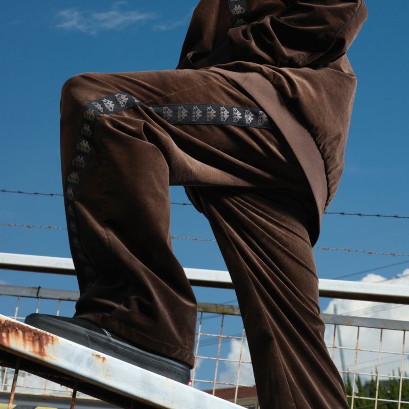 テープラインが特徴のコーデュロイ素材のパンツ。