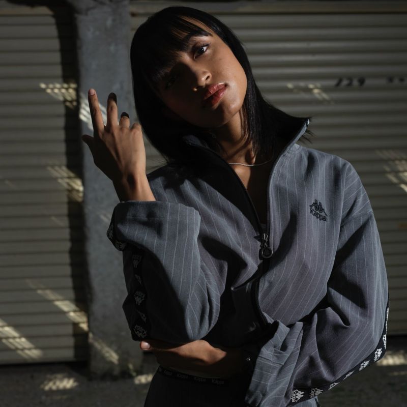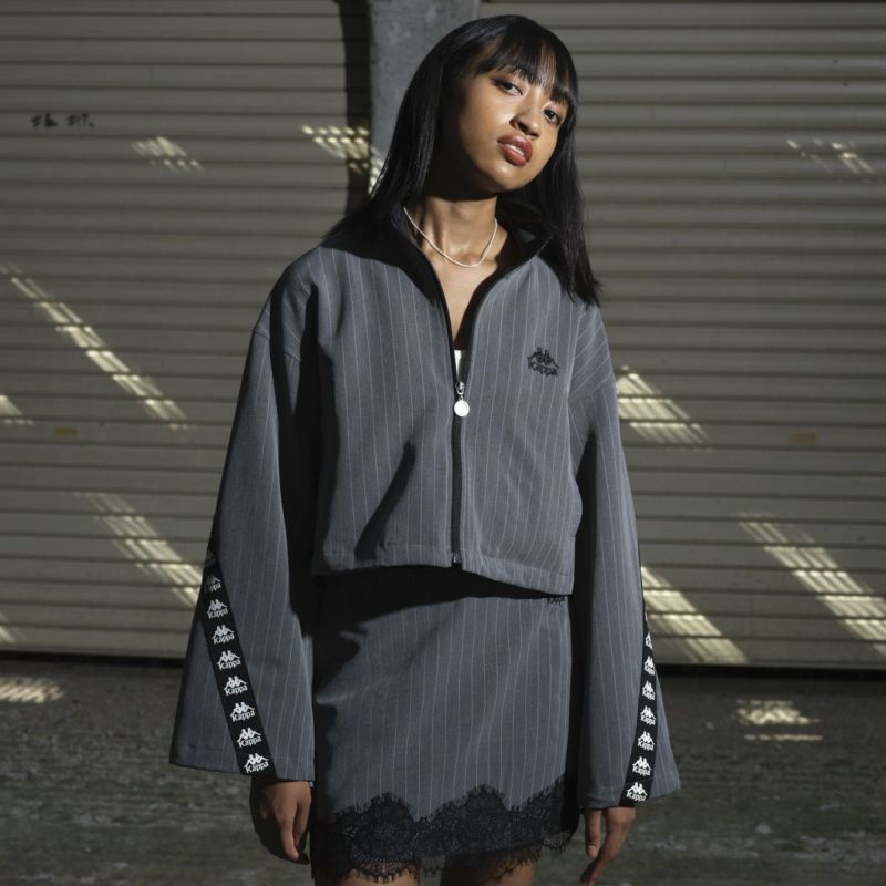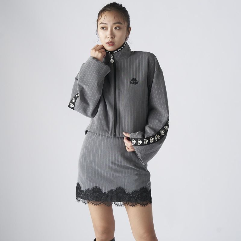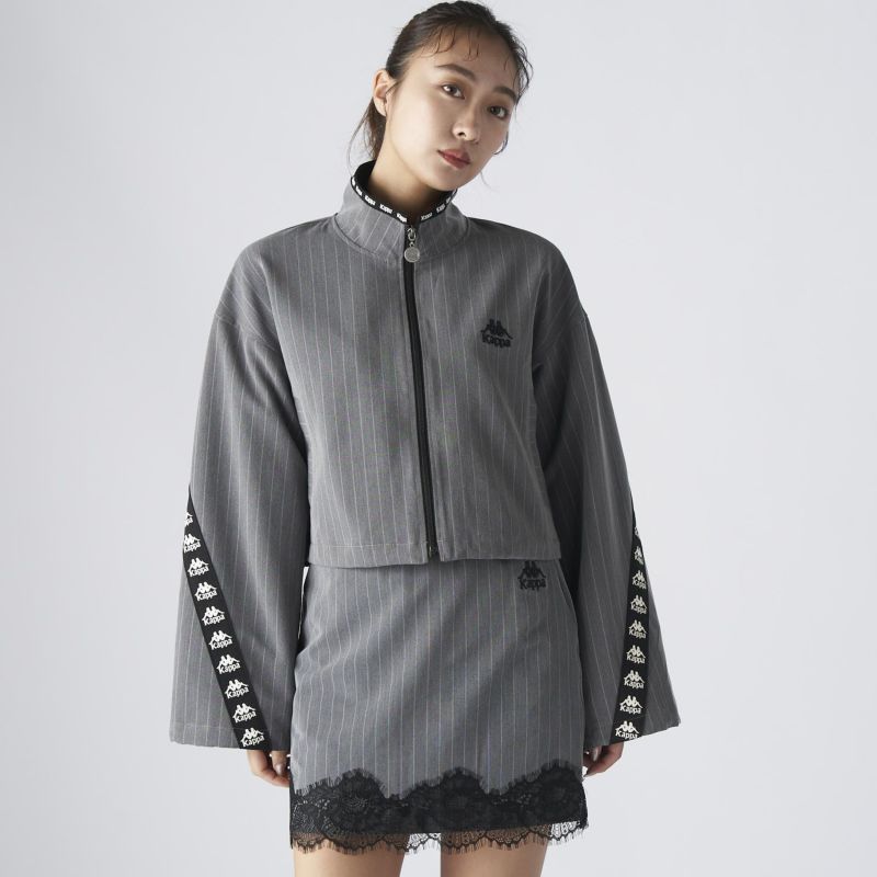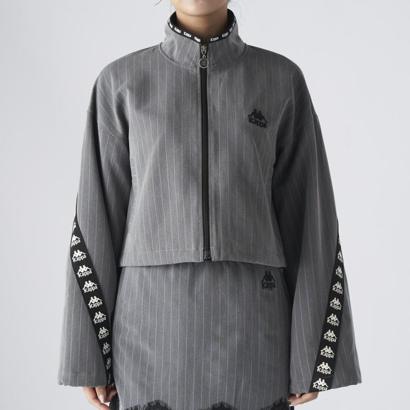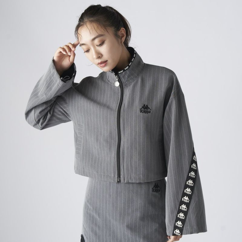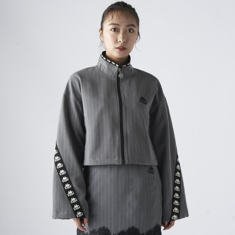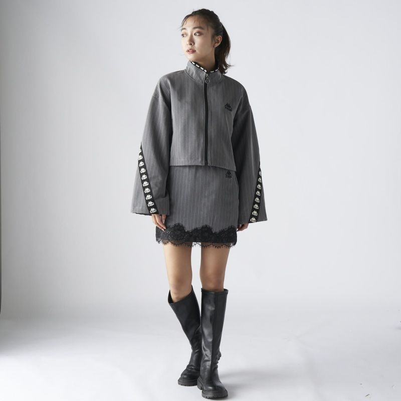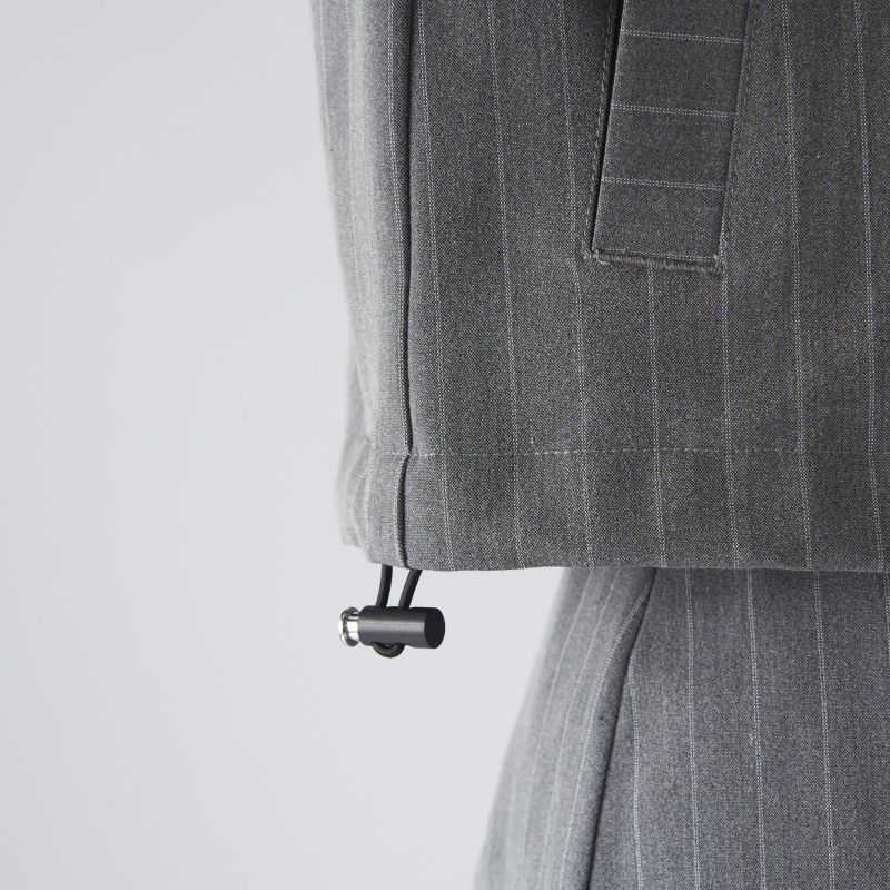 先染めのピンストライプデザインでクラシカルな印象を与えつつ、トレンドのシルエットでエッジを利かせました。