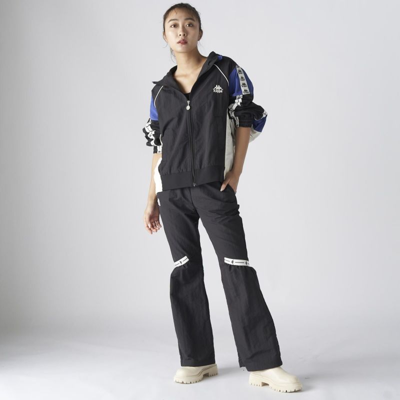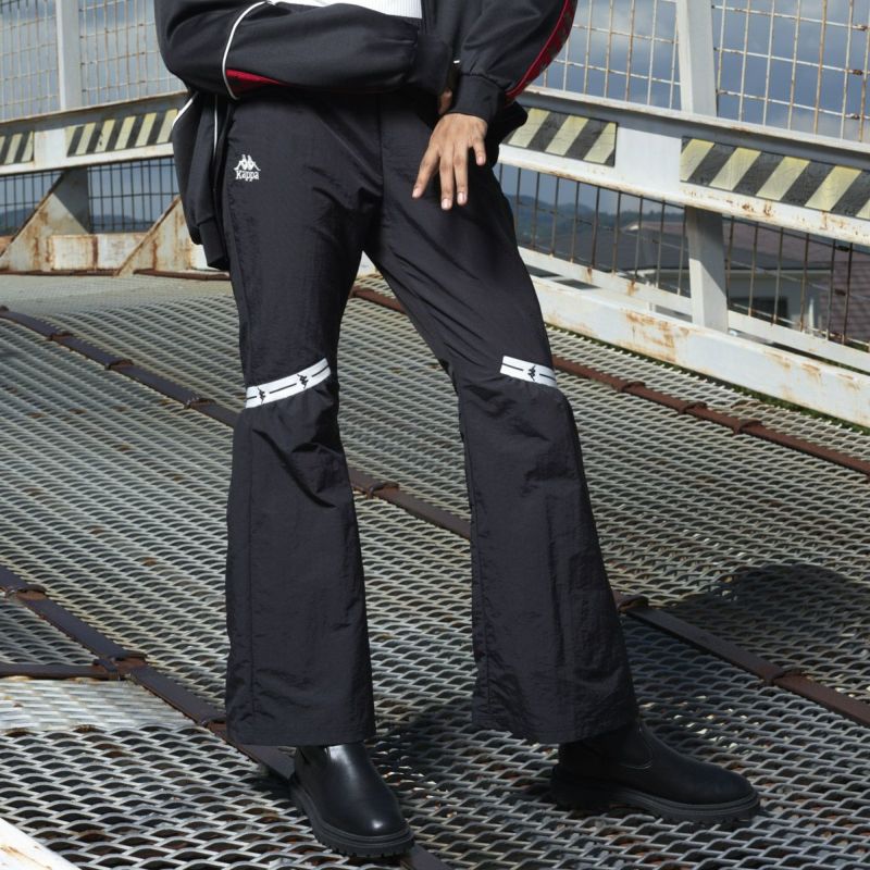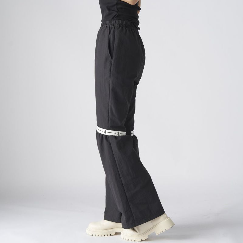 膝上にテープラインを入れ、膝部分のパタ ーンを絞ることでスタイリッシュながら裾にかけてモード感を出しています。