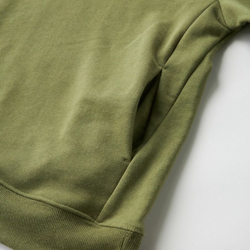 薄手のスウェットトップスなので暑さの残る秋口や春先でも着やすく、冬は重ね着しやくすおすすめです。
