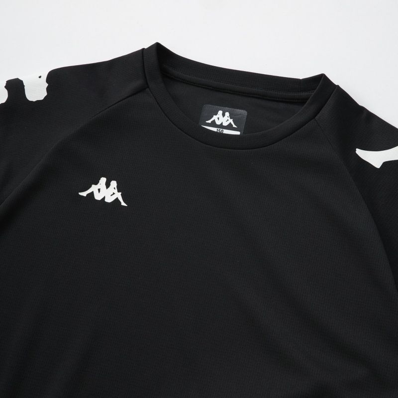Kappa定番デザインのジュニアサイズのラグランTシャツです。吸水速乾生地で機能性にも優れています。