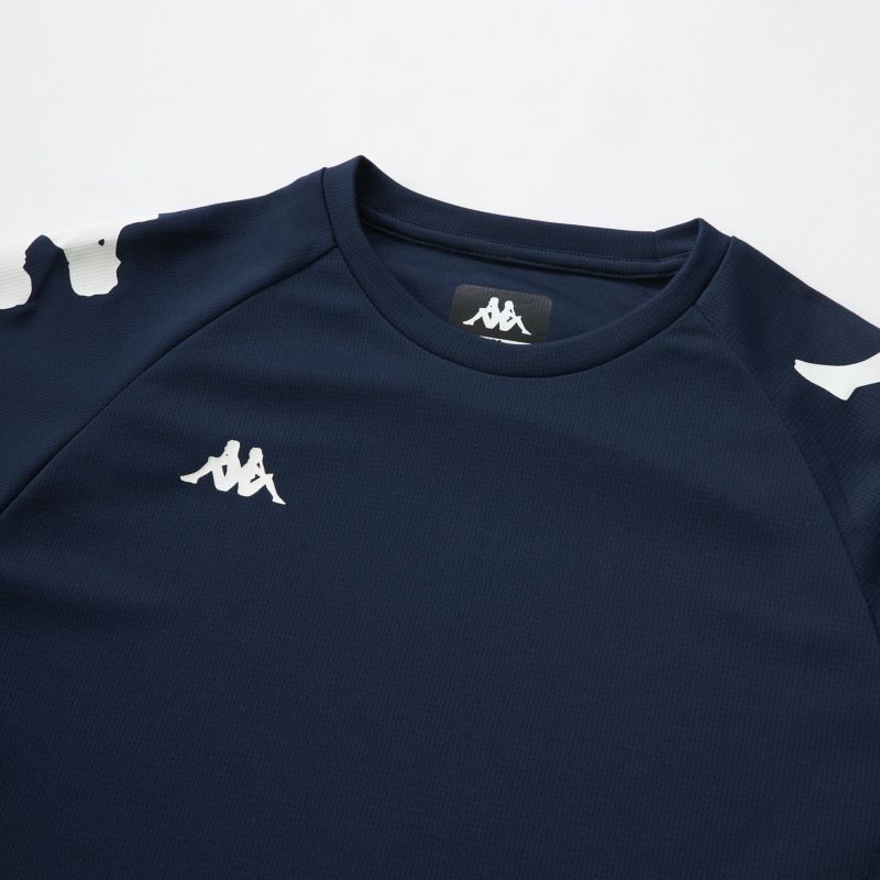 Kappa定番デザインのジュニアサイズのラグランTシャツです。吸水速乾生地で機能性にも優れています。