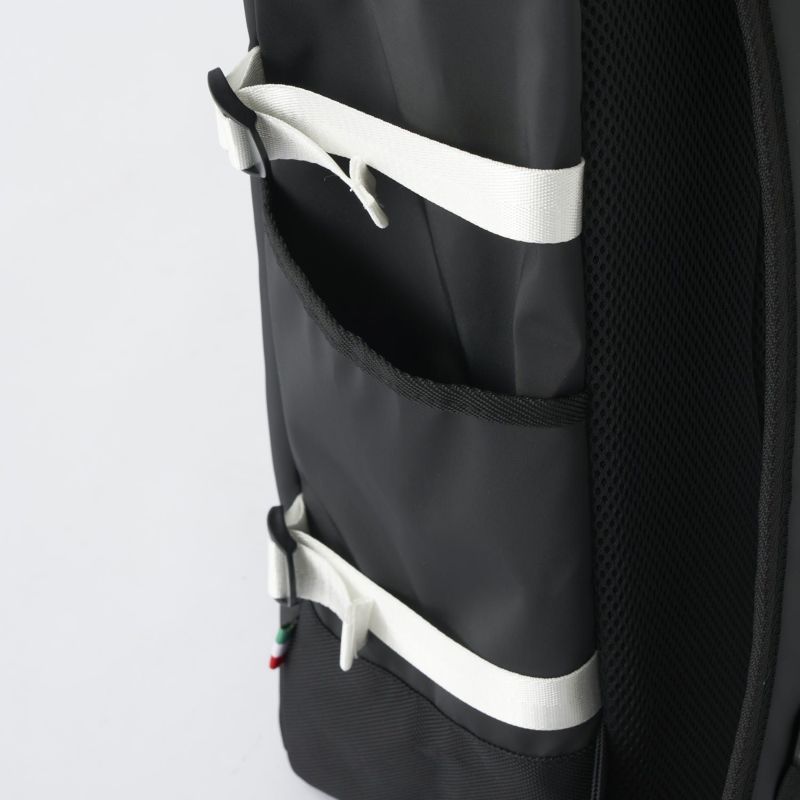 約28Lのバックパックです。PVCコーティング素材ですので汚れや水分の付着を軽減します。収納ポケットも豊富です。