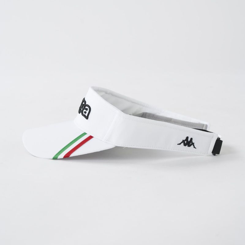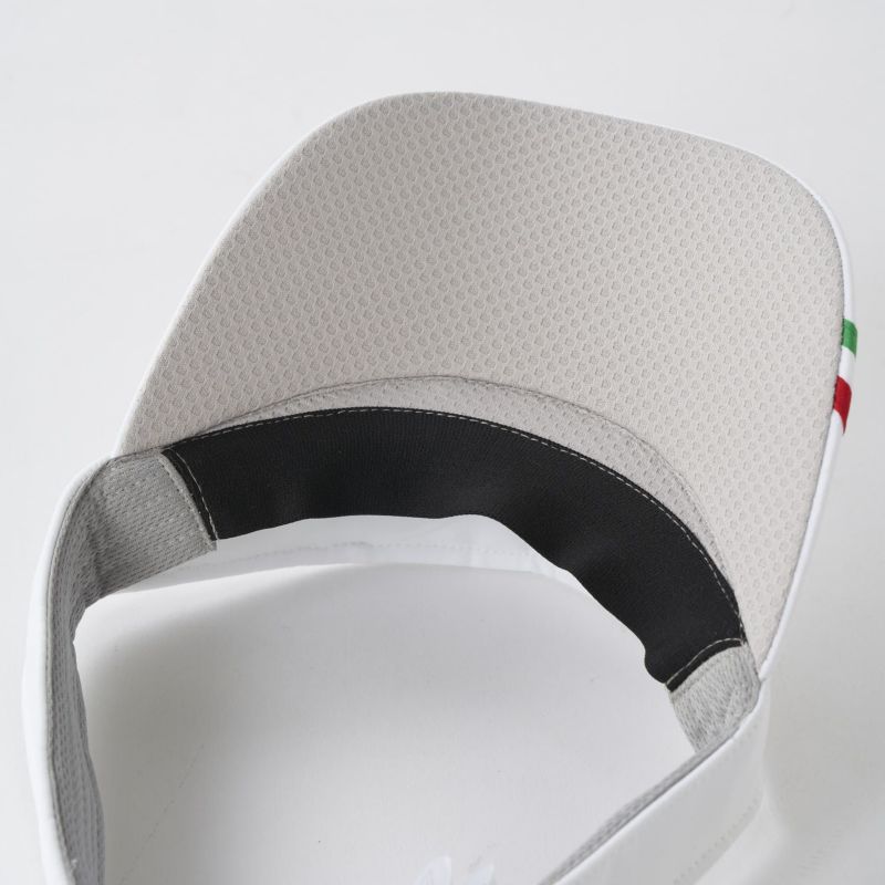 スタンダードなサンバイザーですが、イタリアのトリコカラーがワンポイントのアイテム。着用したときの額部の圧迫、蒸れを防ぐ為、本体との間にベンチレーション搭載。