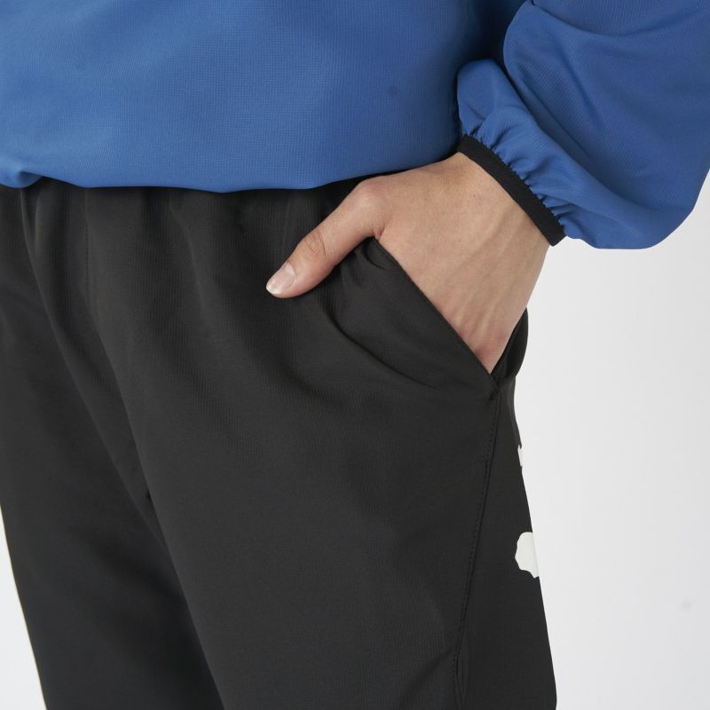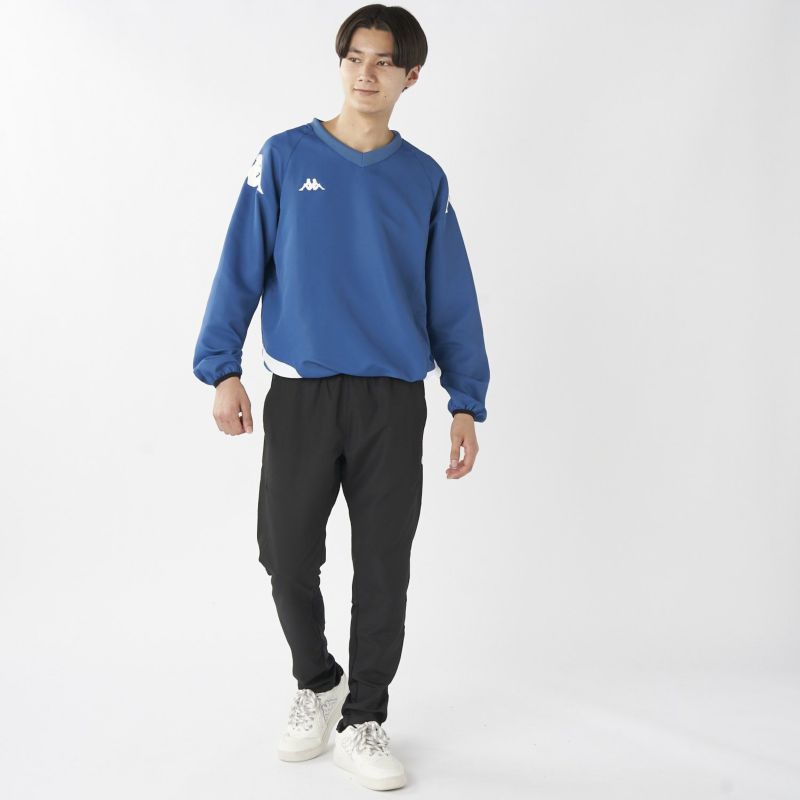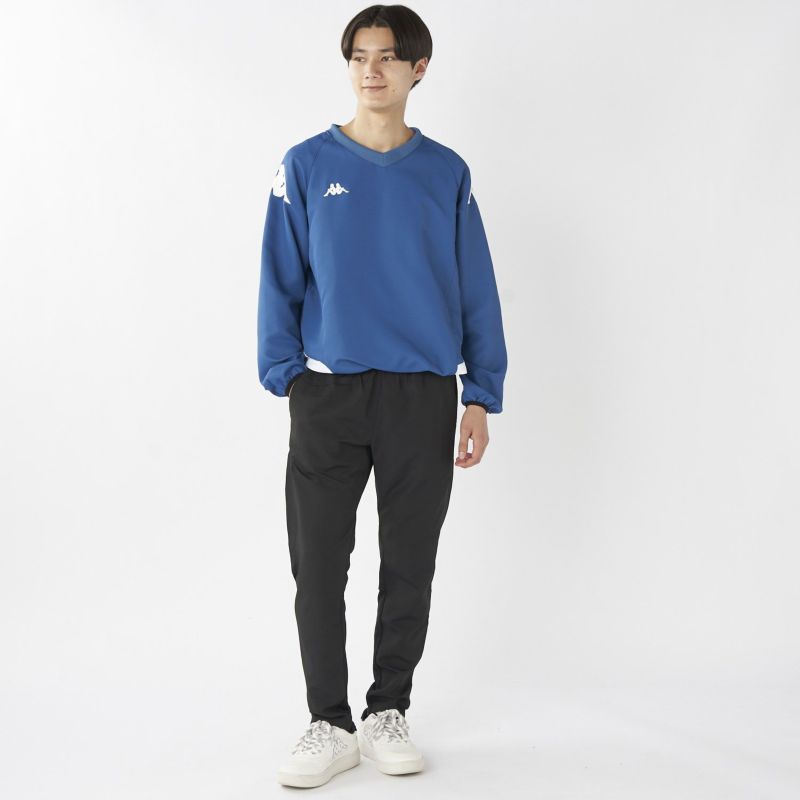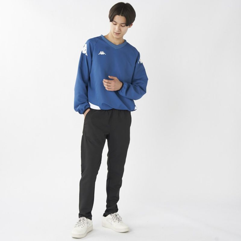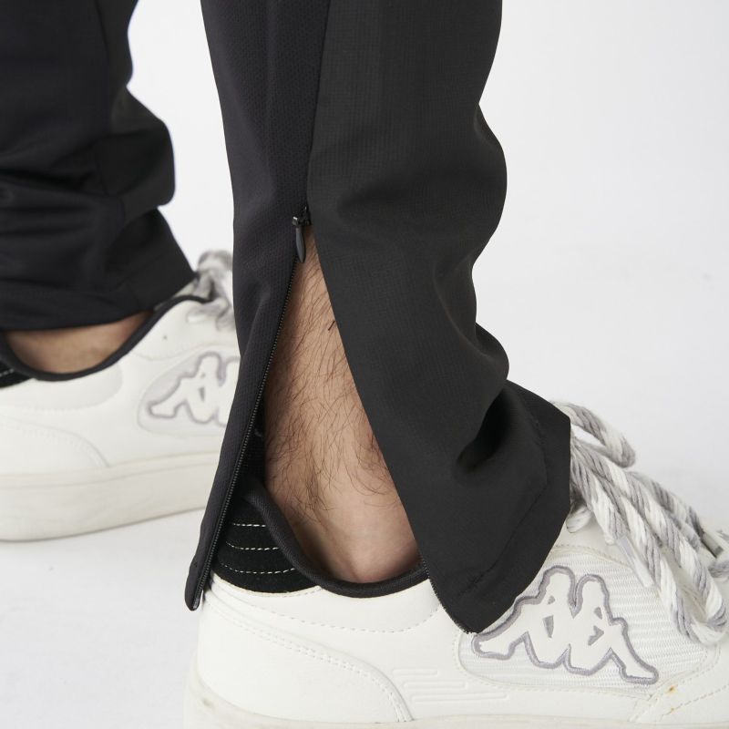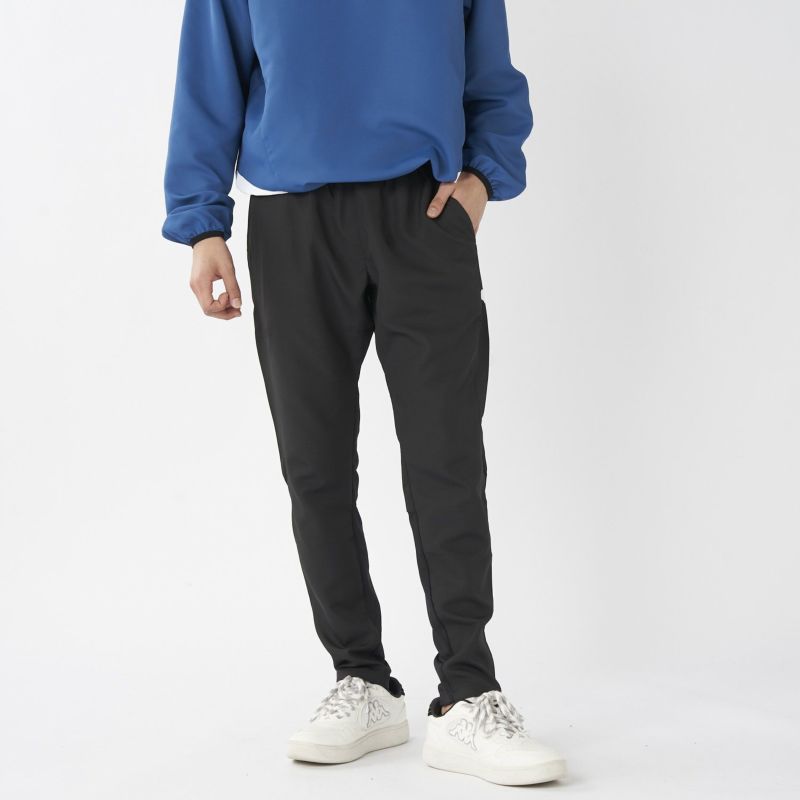 異素材の切替デザインを採用したロングパンツです。裾はファスナー付きで着脱しやすい設計です。