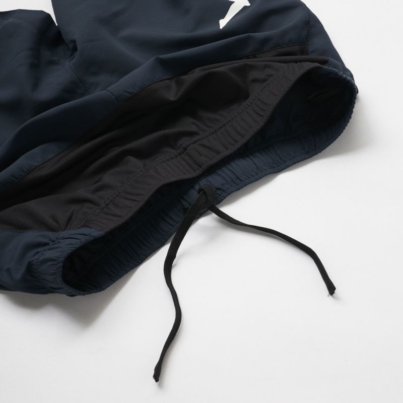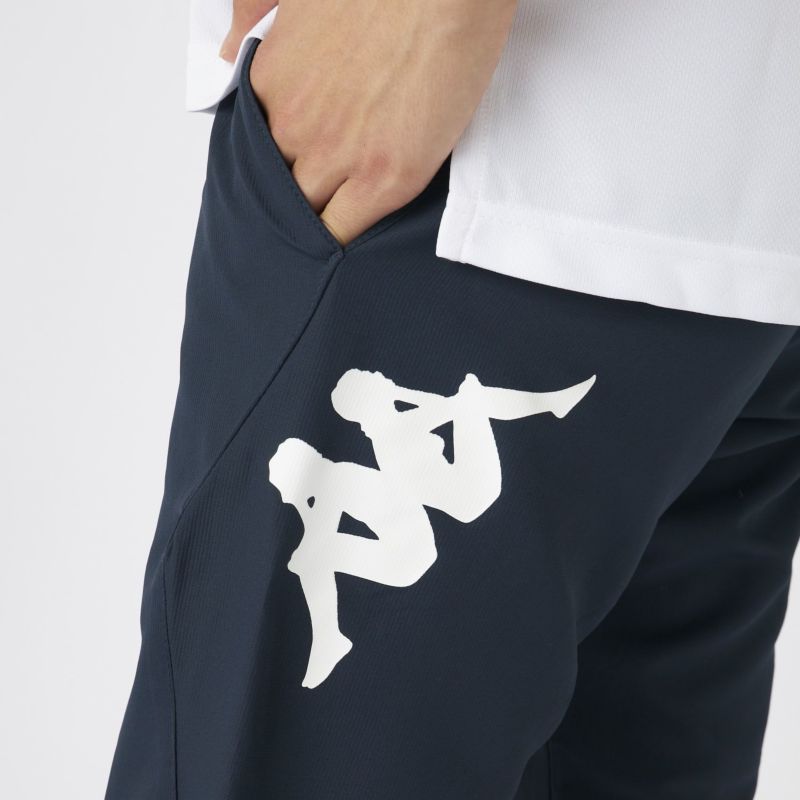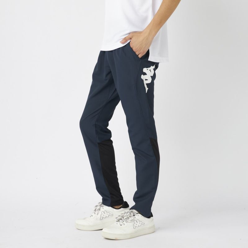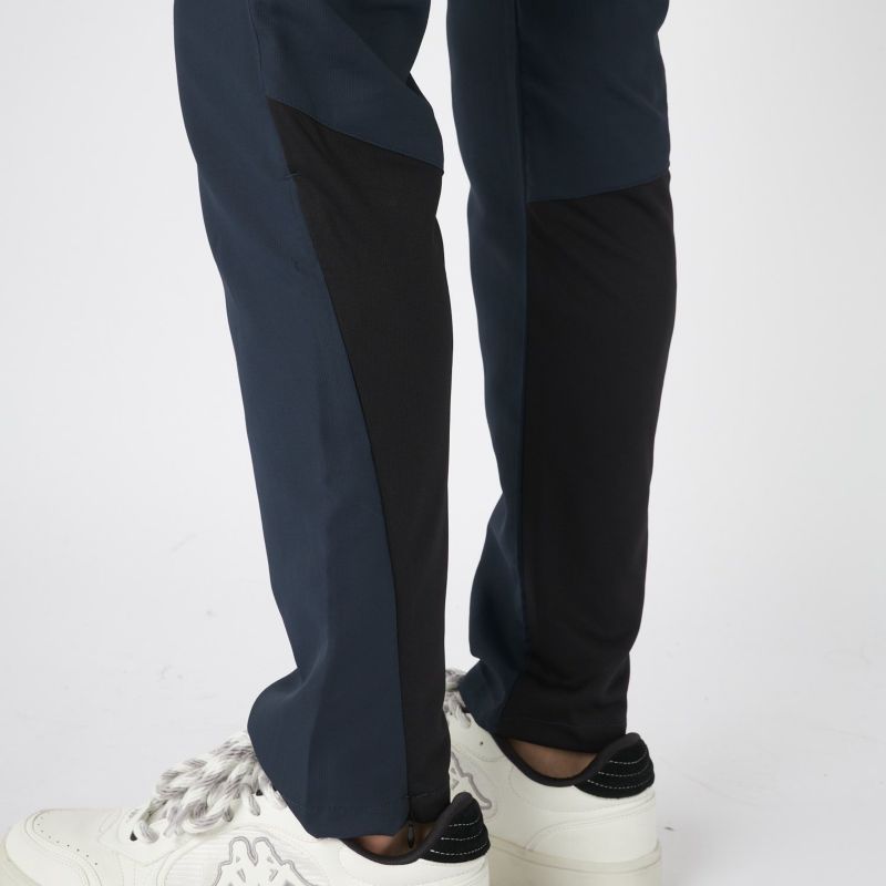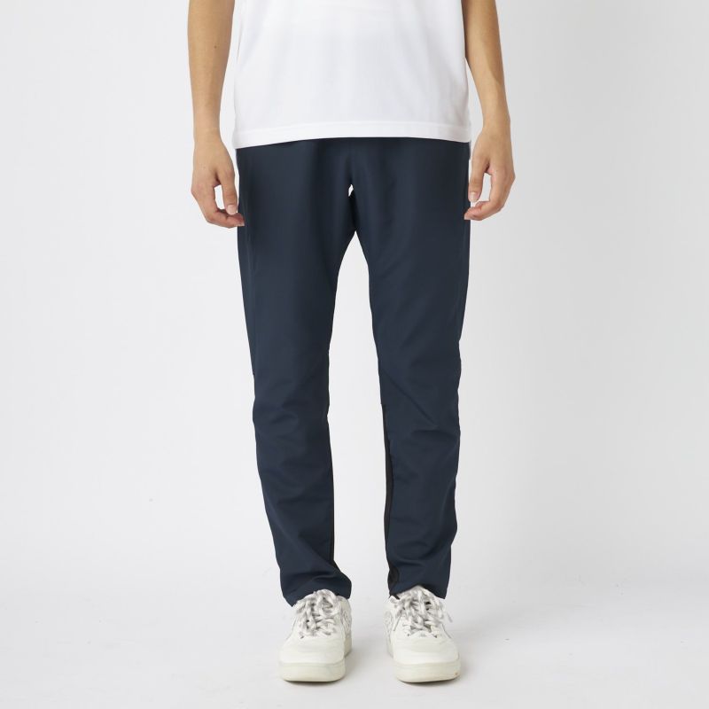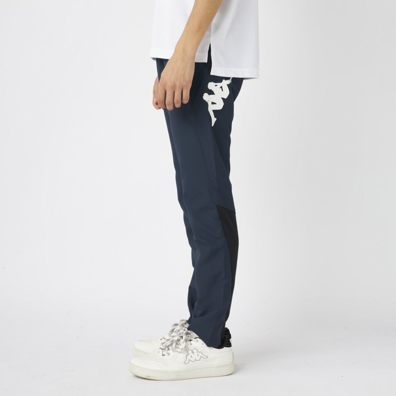 異素材の切替デザインを採用したロングパンツです。裾はファスナー付きで着脱しやすい設計です。