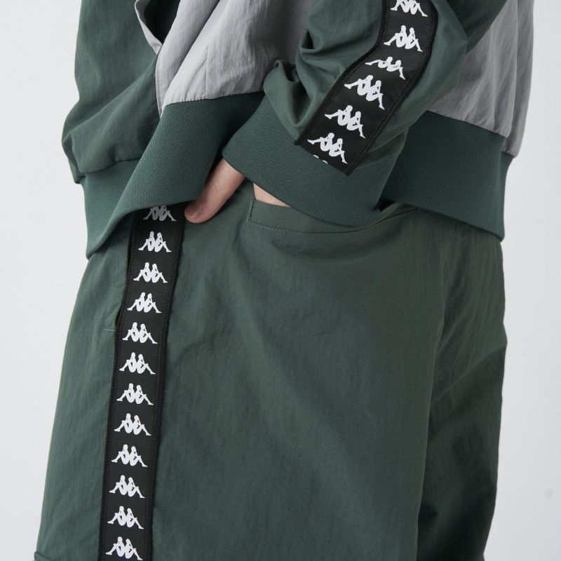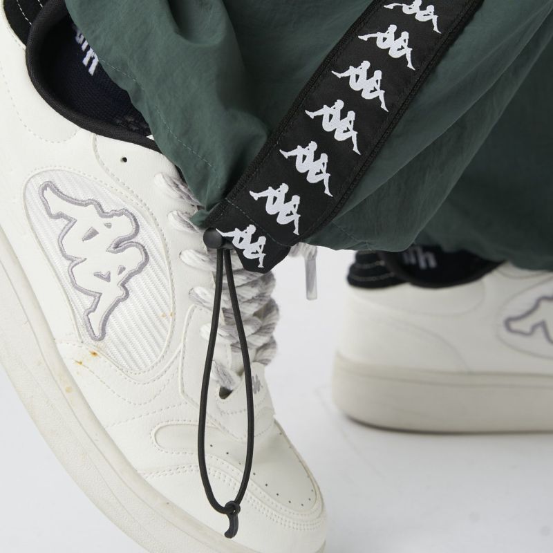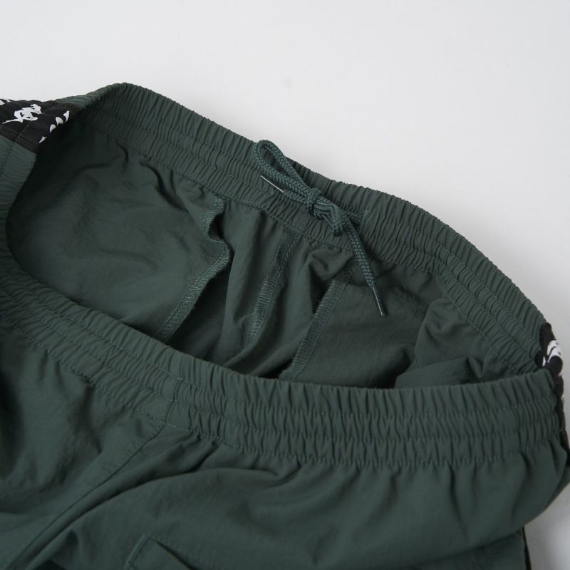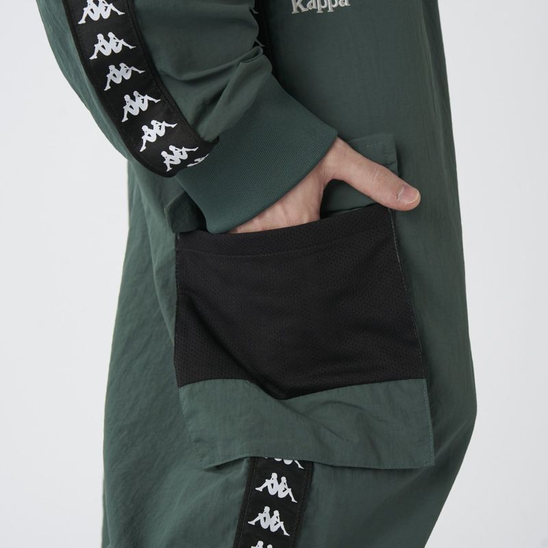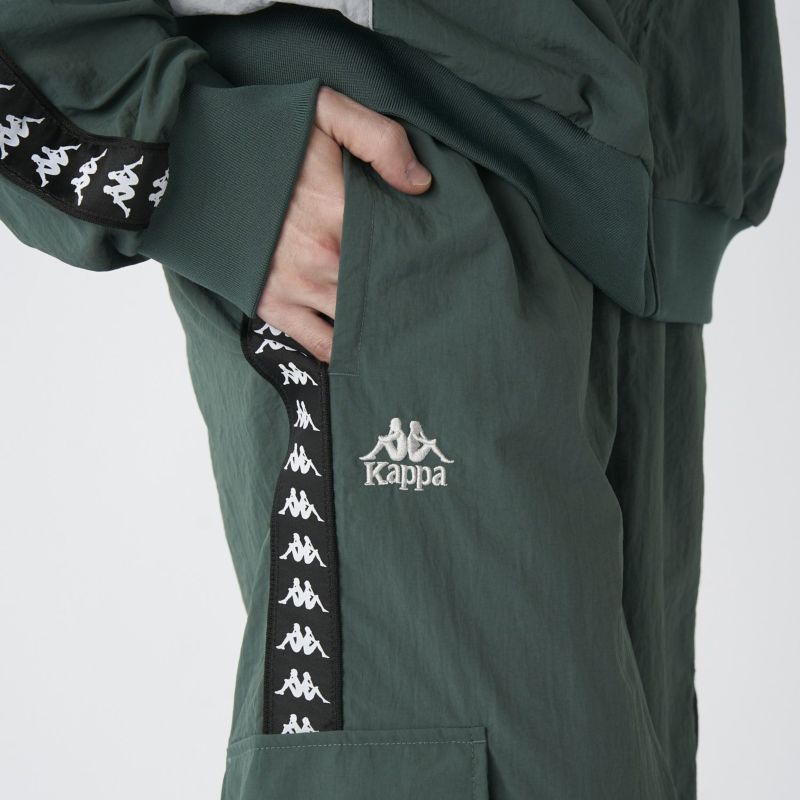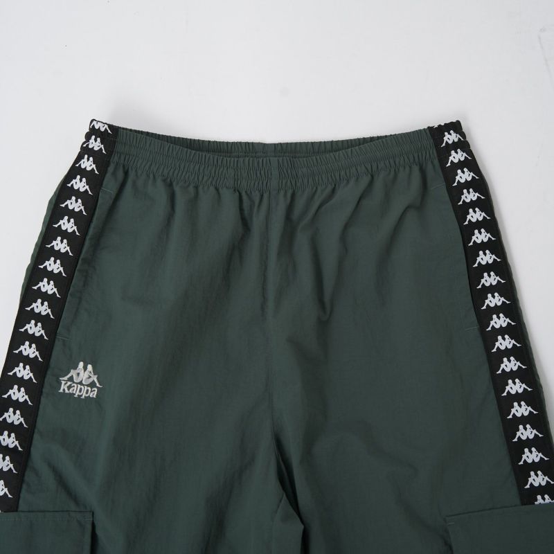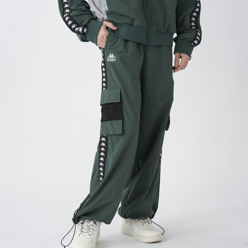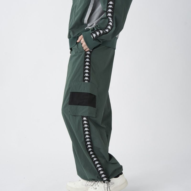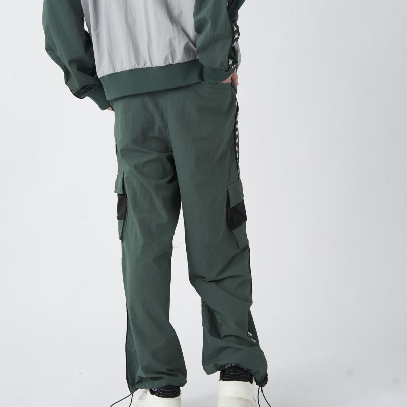 ナイロン素材を採用したカーゴパンツです。裾にかけてフレアシルエットに設計し、裾部分はドローコードで絞る事が可能です。