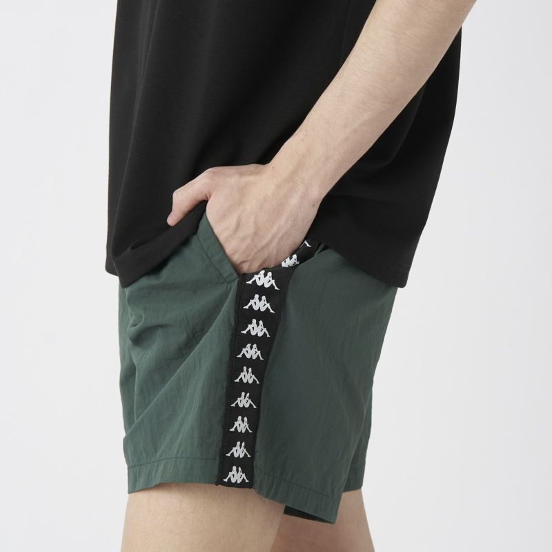 ナイロン素材を採用したハーフパンツです。テープデザインがデザインポイントになっています。