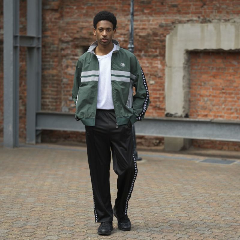ジャージ素材を採用したテープデザインのトラックパンツです。スタンダードなシルエットで設計しています。
