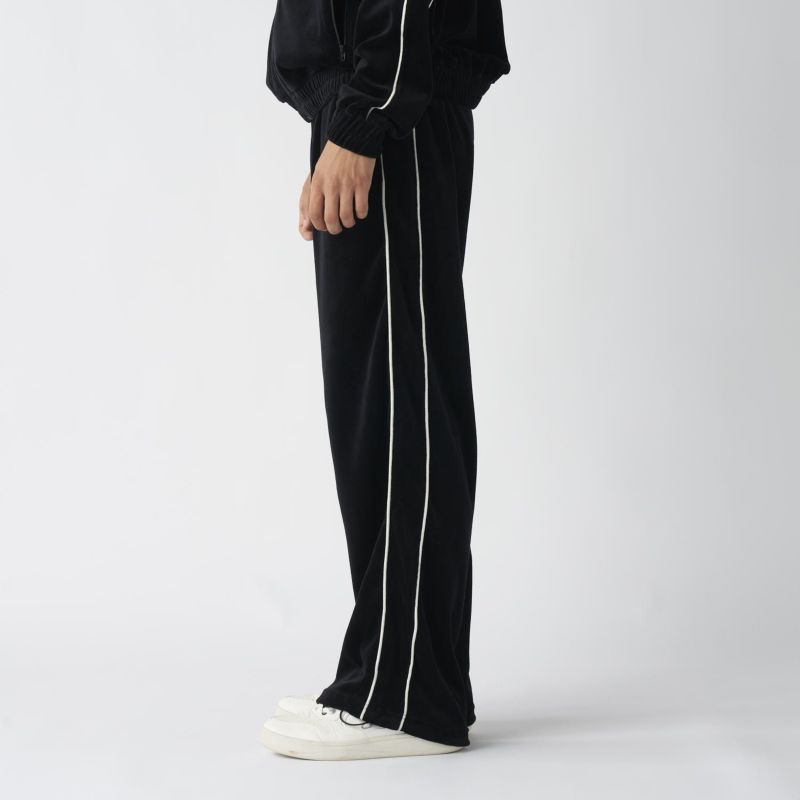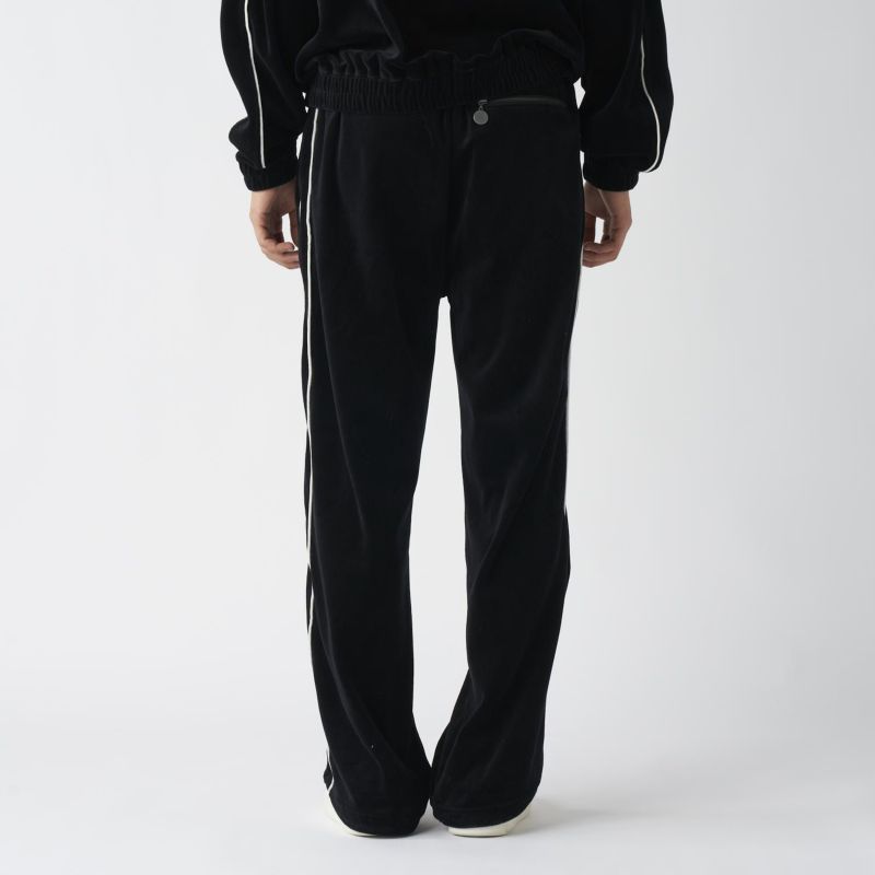 上品な光沢を放つベロア素材に、直線的で構築的なボックスシルエットを掛け合わせた一本。