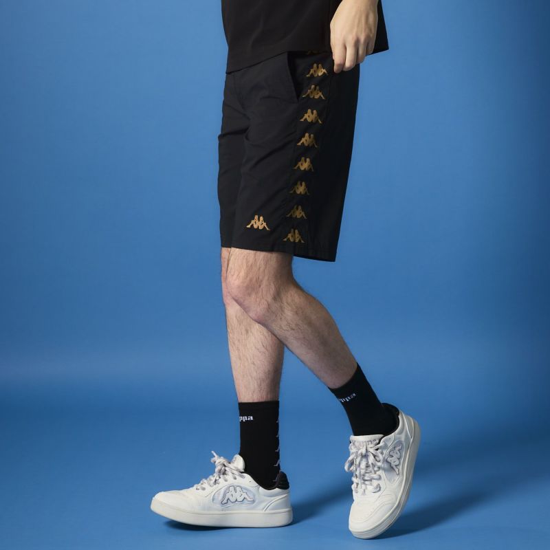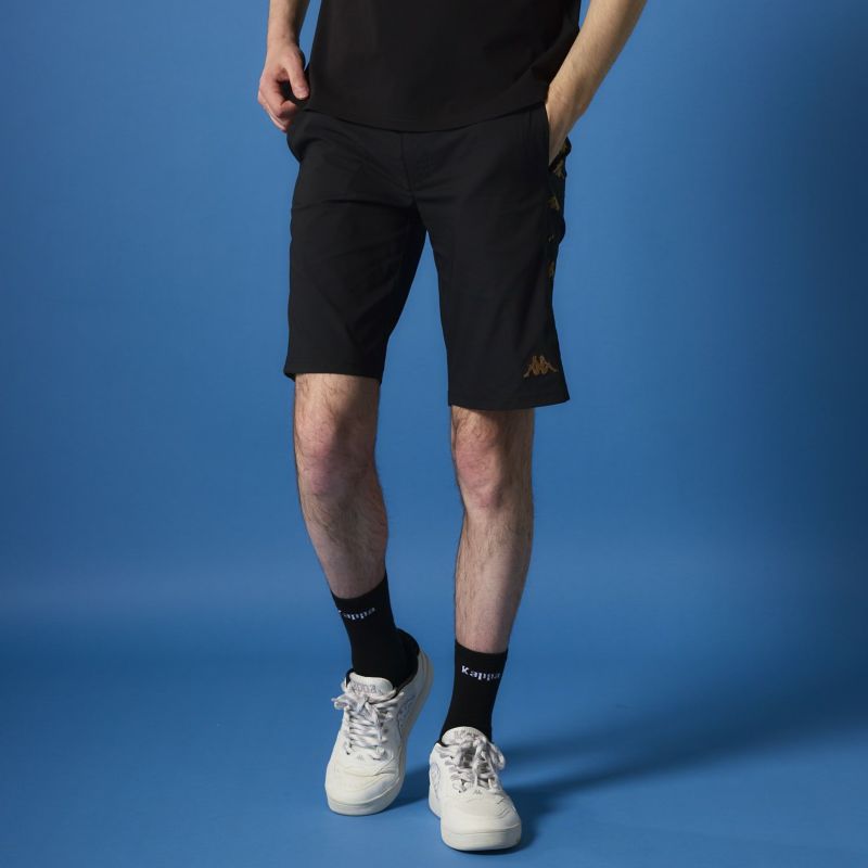 バンダテープをメインに使用したハーフパンツ。スポーティーな着こなしにオススメです。いろいろなコーディネートに合わせられるモデルです。