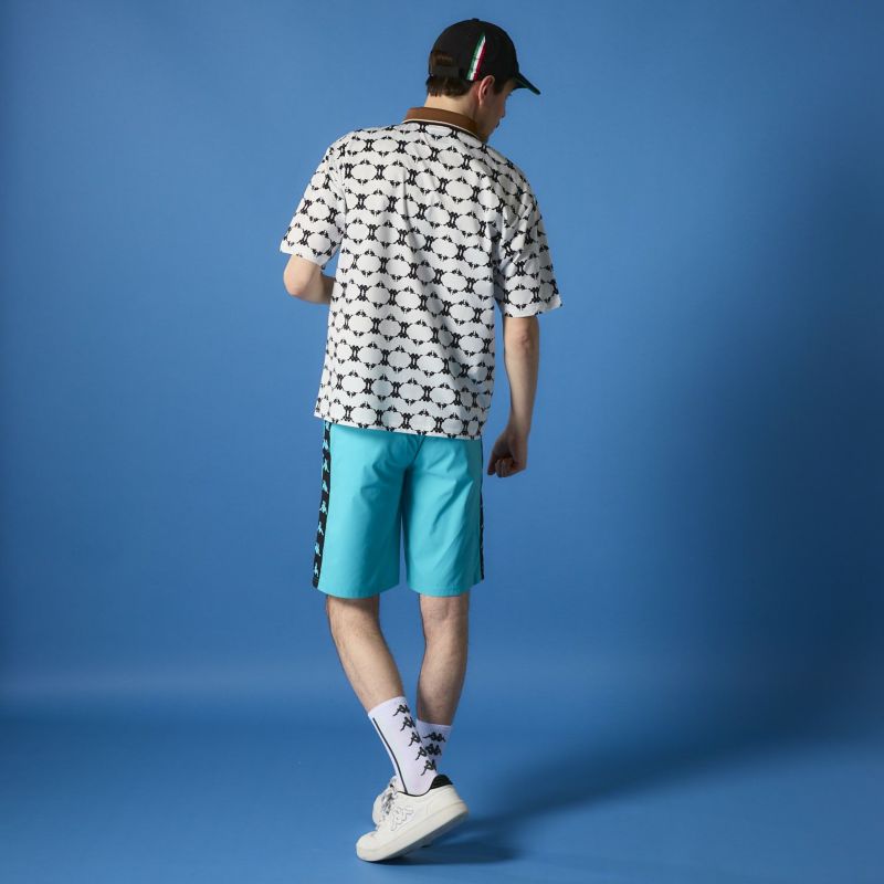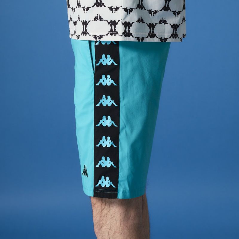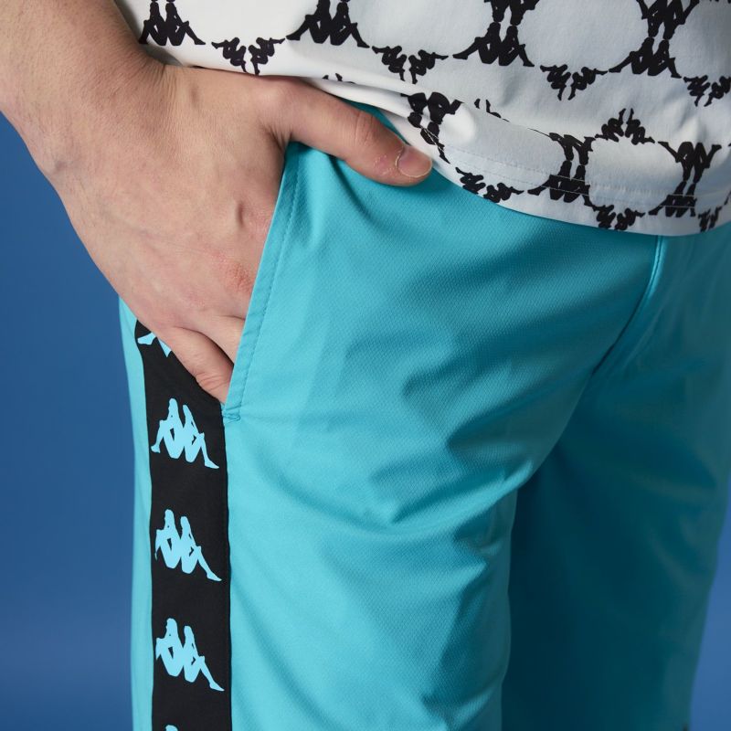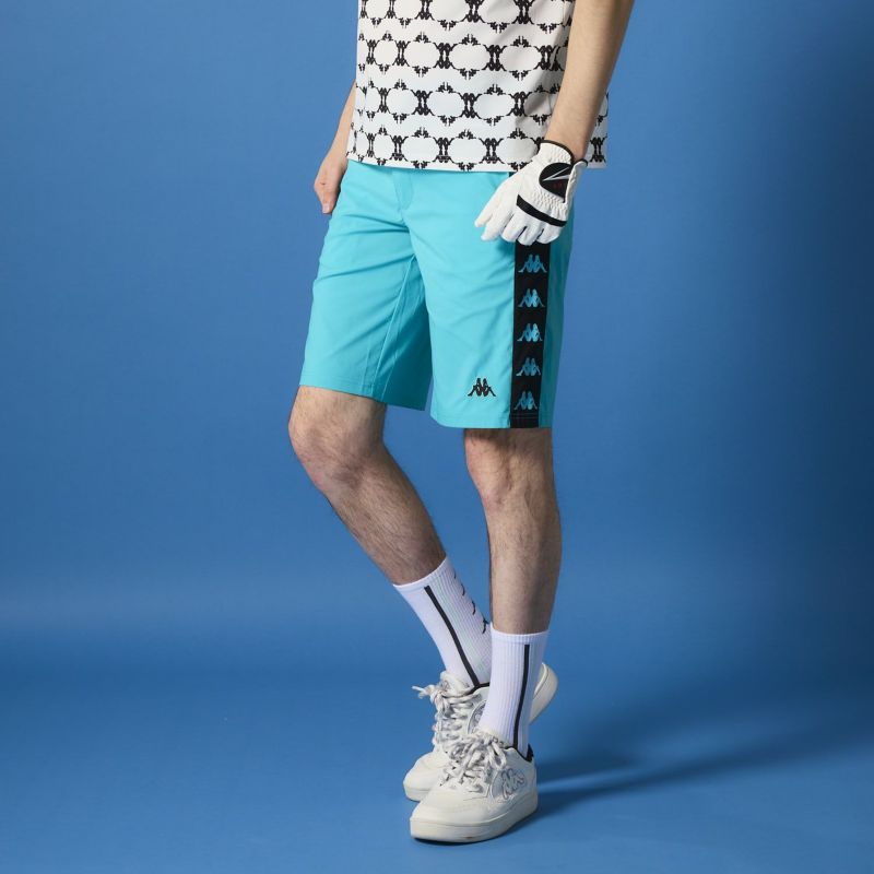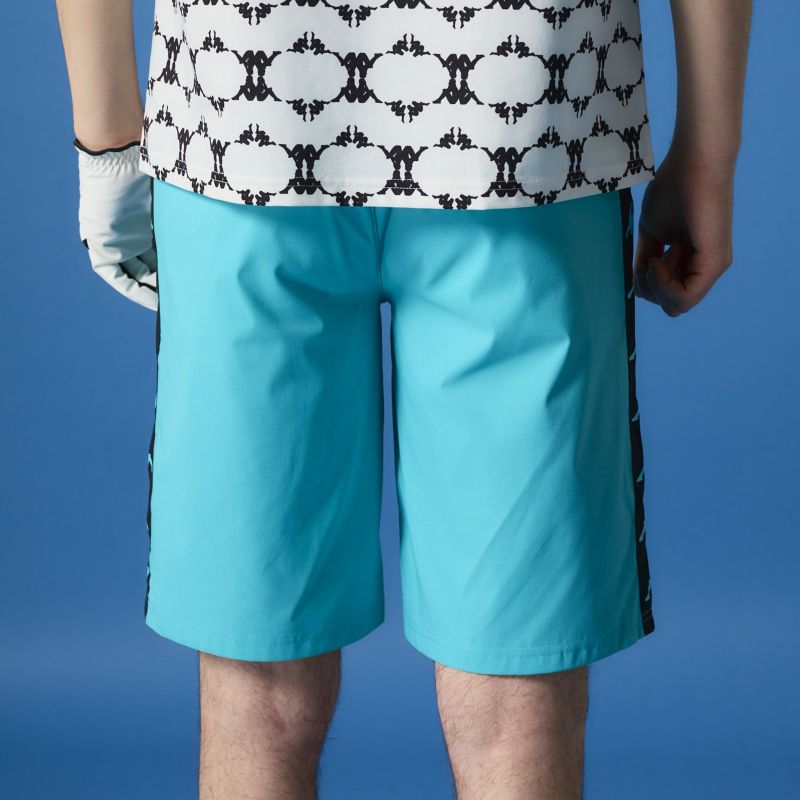 バンダテープをメインに使用したハーフパンツ。スポーティーな着こなしにオススメです。いろいろなコーディネートに合わせられるモデルです。