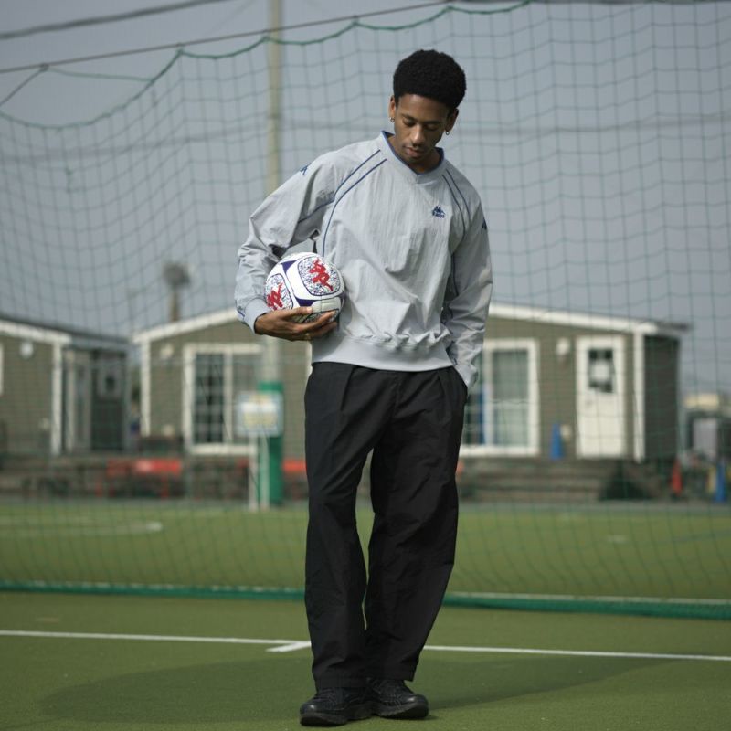 パイピングデザインのナイロンピステです。オーバーサイズ風に着こなせば女性にもオススメです。