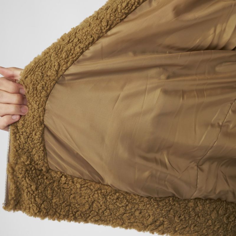柔らかなボア素材と洗練されたシルエットが魅力のボアジャケット。