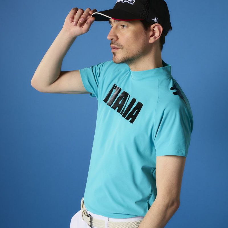 肩に大きなOMINIを配置した存在感抜群のモックネックTシャツです。着心地も良くヘビーローテーション間違いなし!