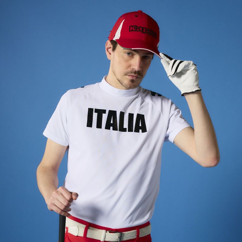 肩に大きなOMINIを配置した存在感抜群のモックネックTシャツです。着心地も良くヘビーローテーション間違いなし!