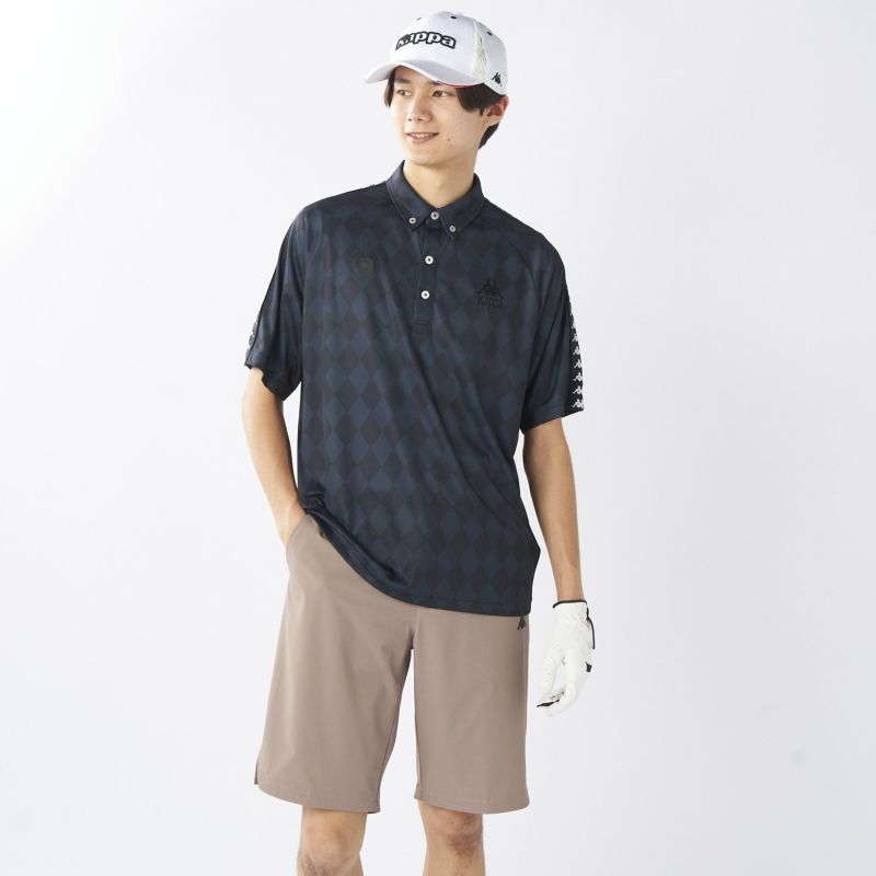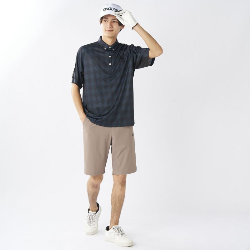 特徴的なバンダロゴを使用したサッカーユニフォーム調のGOLFポロシャツです。同色で入れたダイヤ柄が特徴的でスポーティーなコーディネートに仕上がります。