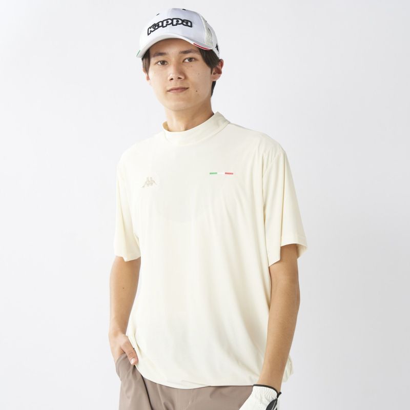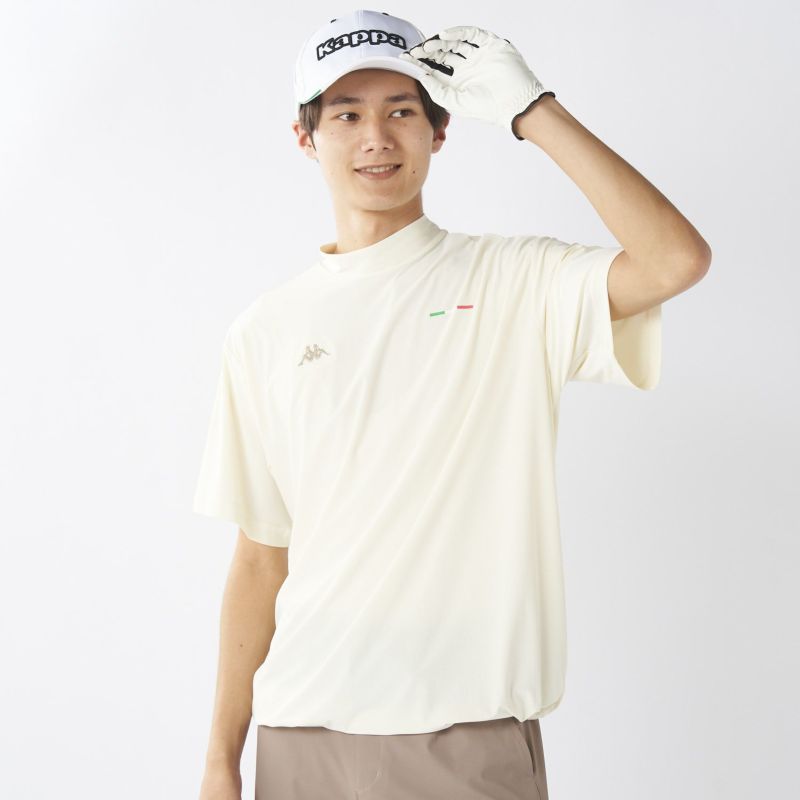シンプルなモックネックTシャツ。着心地抜群でシンプルなデザインの為、普段使いも十分できるTシャツです。少々オーバーサイズのシルエットが窮屈なストレスが無く快適にゴルフができます。