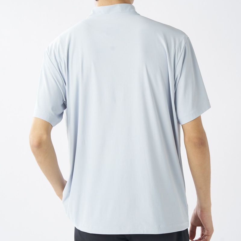シンプルなモックネックTシャツ。着心地抜群でシンプルなデザインの為、普段使いも十分できるTシャツです。少々オーバーサイズのシルエットが窮屈なストレスが無く快適にゴルフができます。