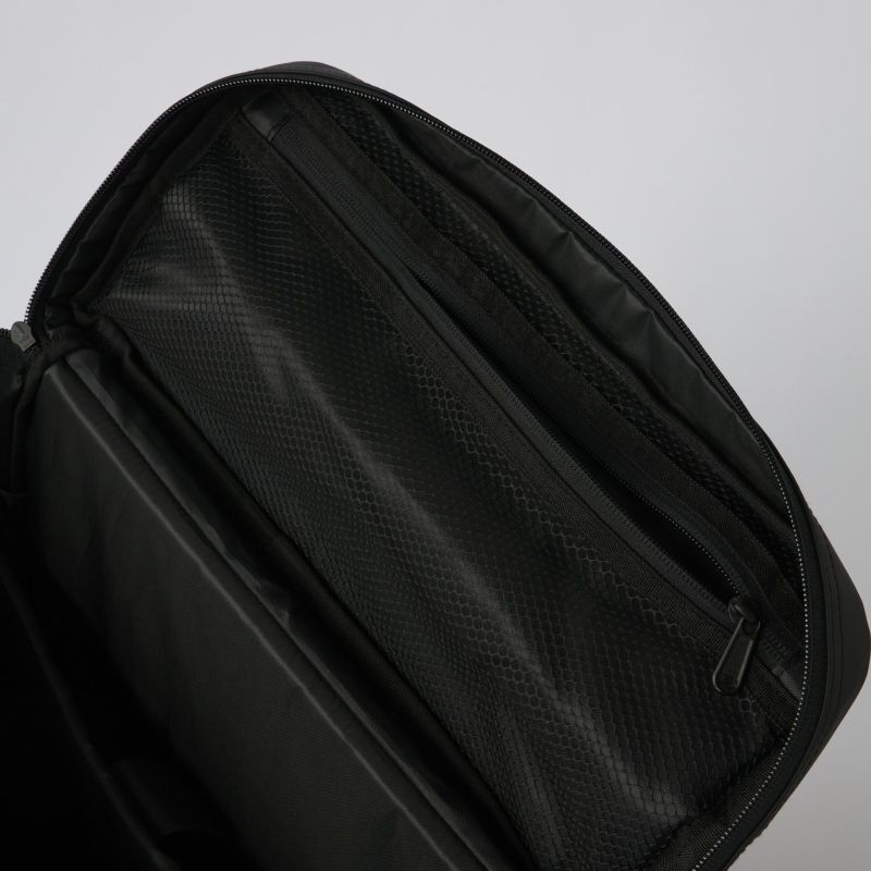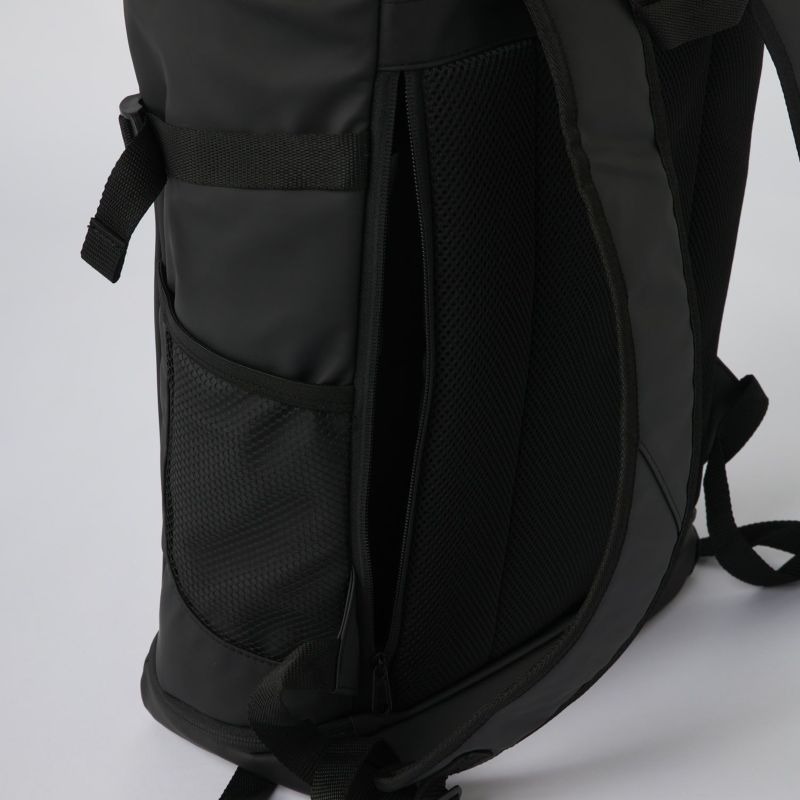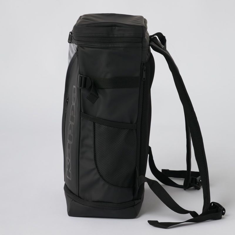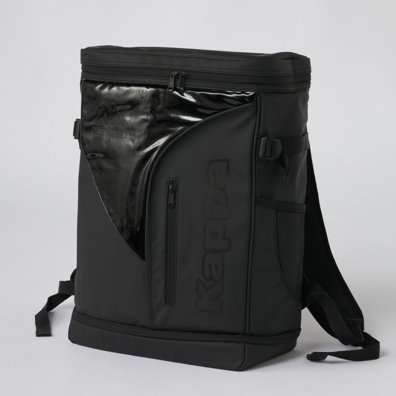 スクエア型エナメルバッグ。背負っても疲れにくいパット入りベルト。
