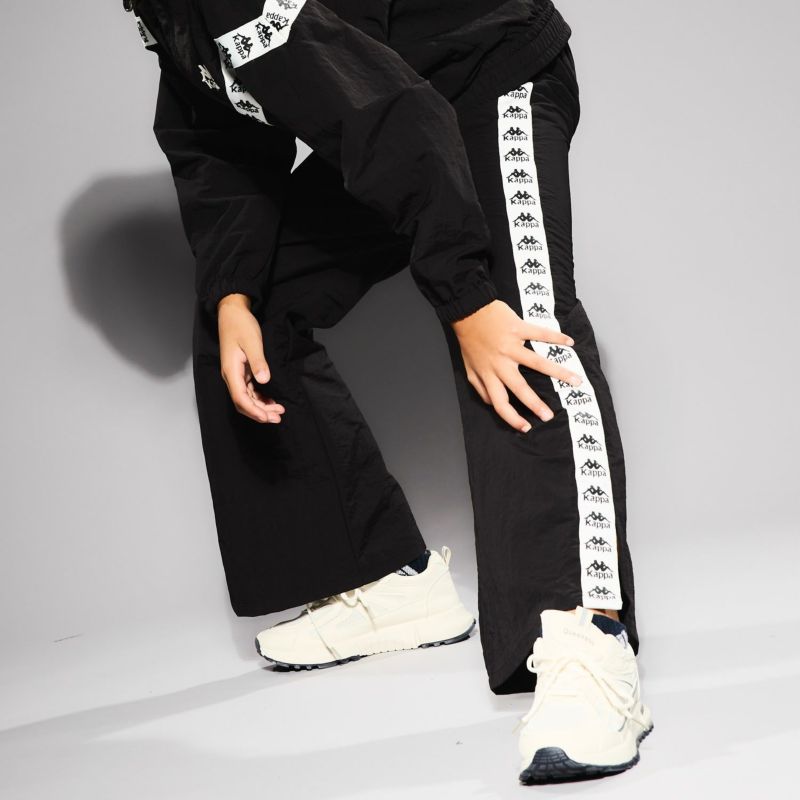 トレンドのスポーツミックスでこなれ感のあるナイロン素材のロングパンツ。