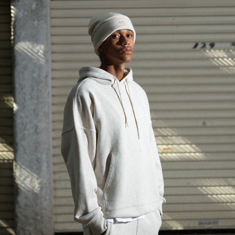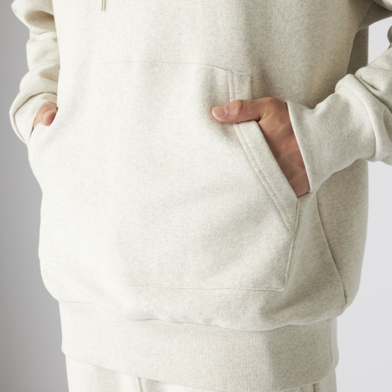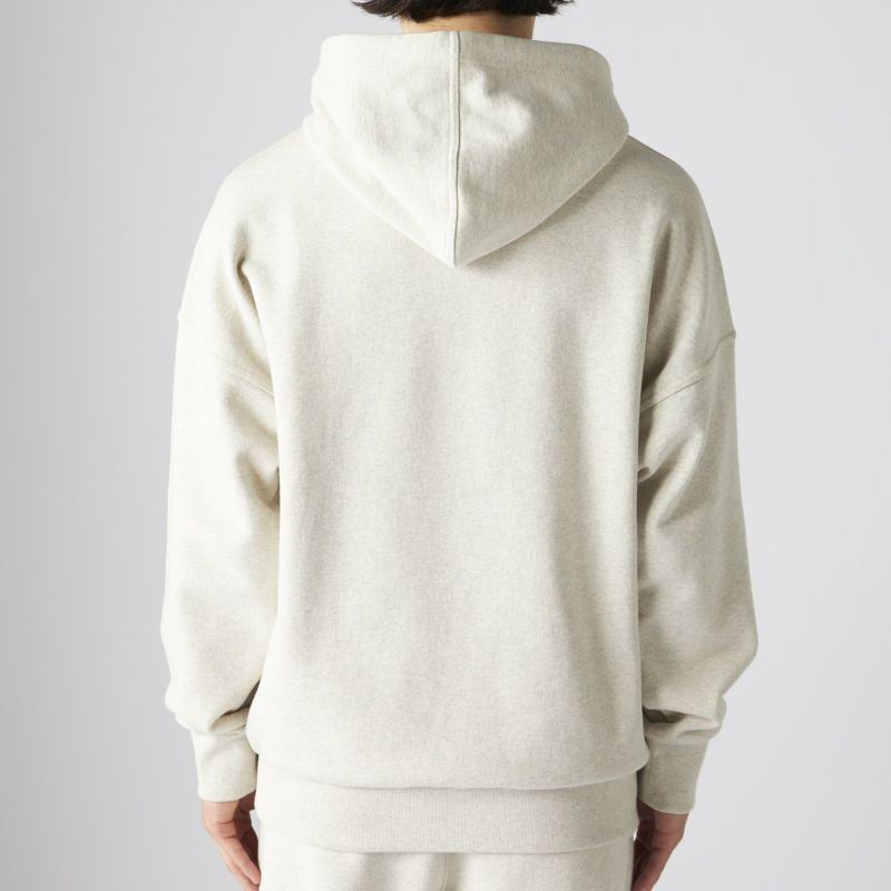 肉厚の素材感が特徴の裏毛のスウェットパーカー。