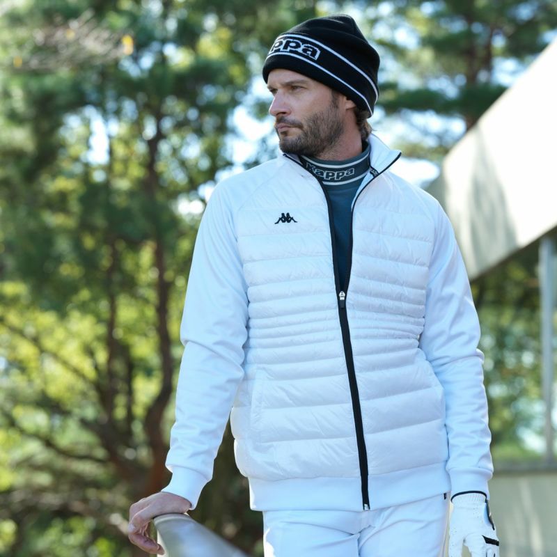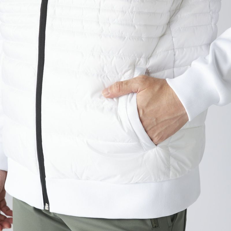 袖部と胴部の素材を切り替えスイングしやすい機能性を持たせた防寒アウター。
