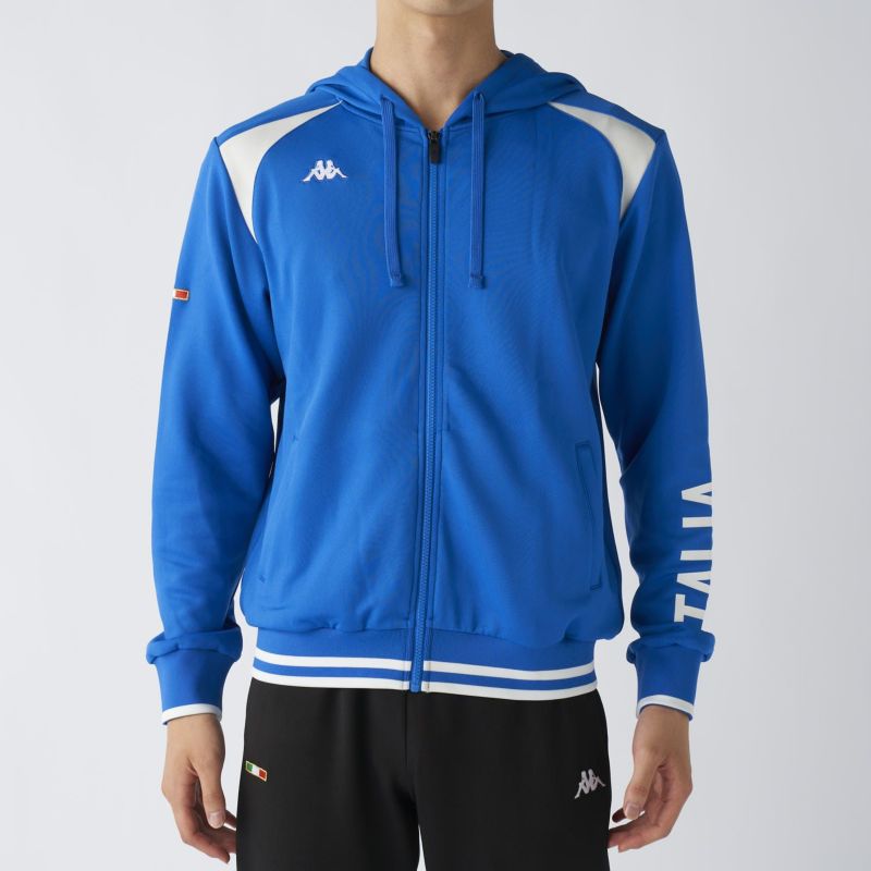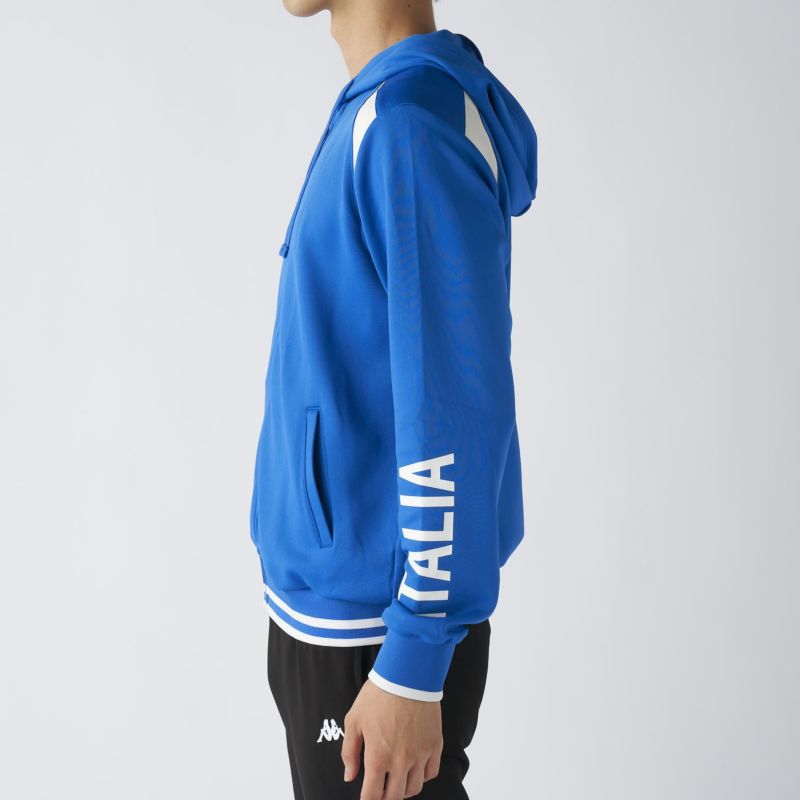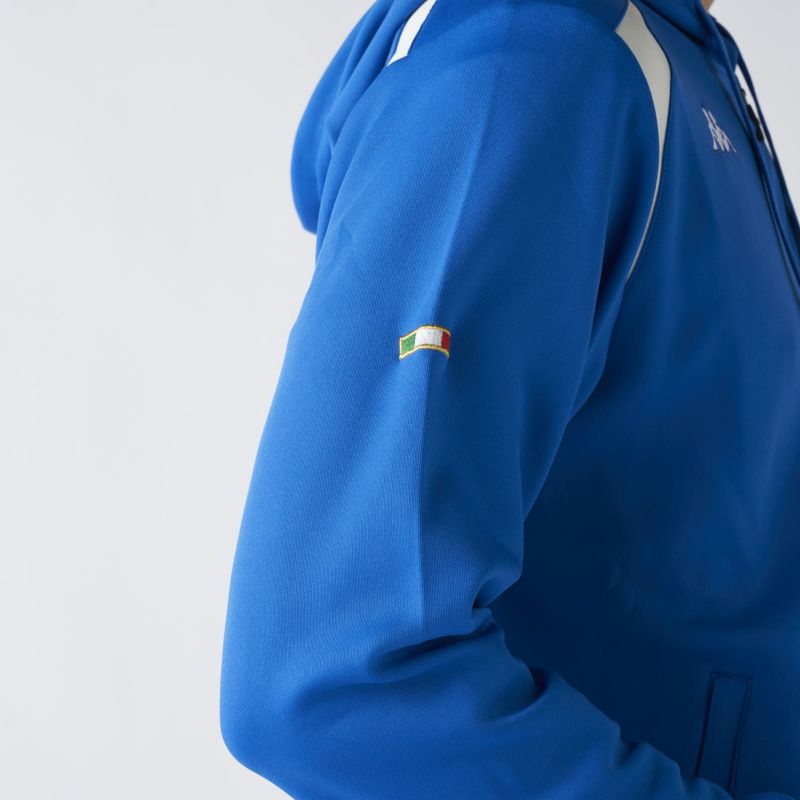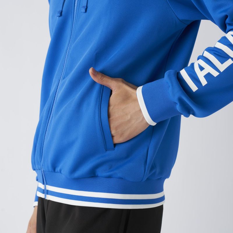 左袖に大胆に配された「ITALIA」のレタリングが印象的で、袖上部のイタリアンカラーのディテールがさりげないアクセントに◎。
