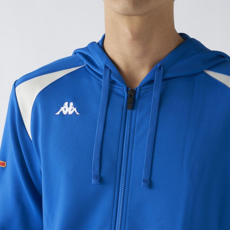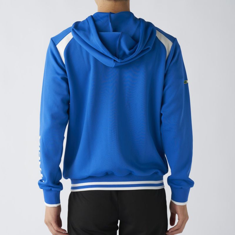 胸元のロゴや、裾・袖口のストライプがスポーティなムードを演出。