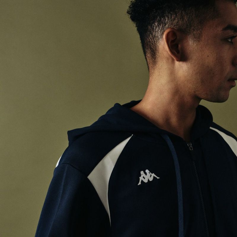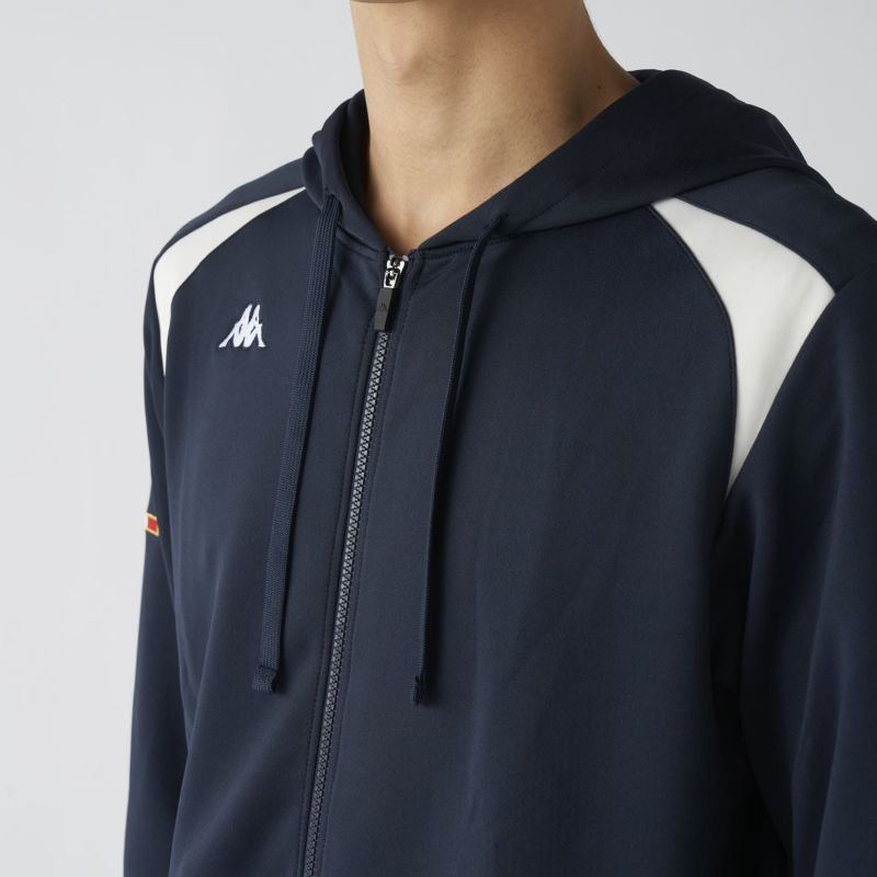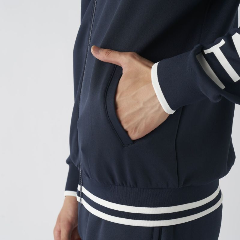 胸元のロゴや、裾・袖口のストライプがスポーティなムードを演出。