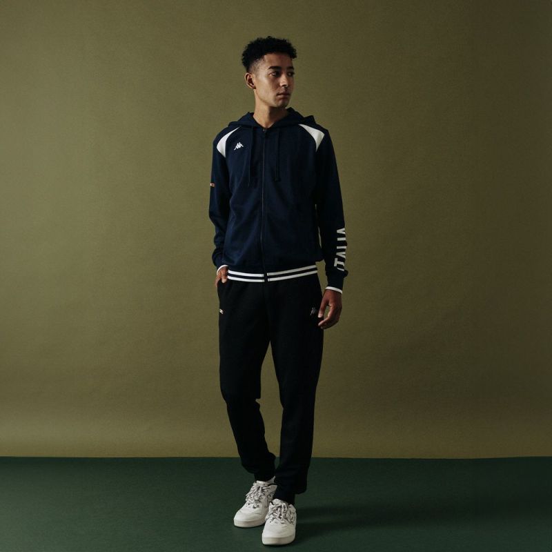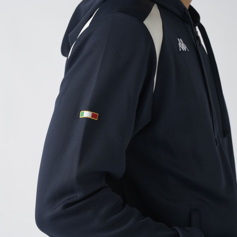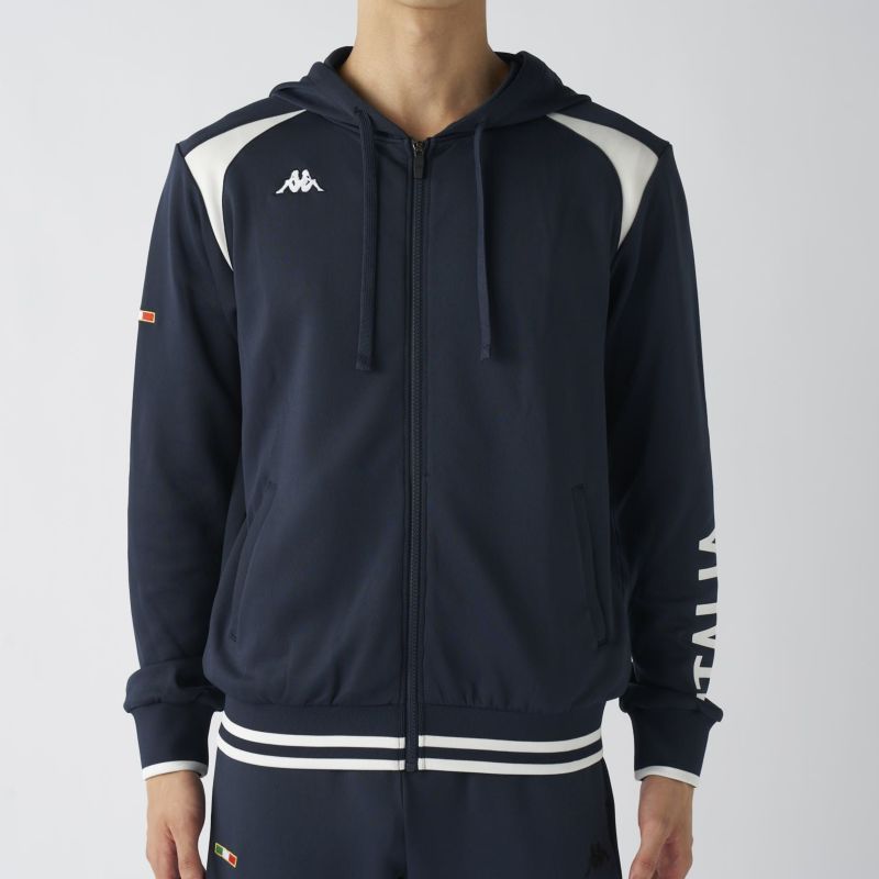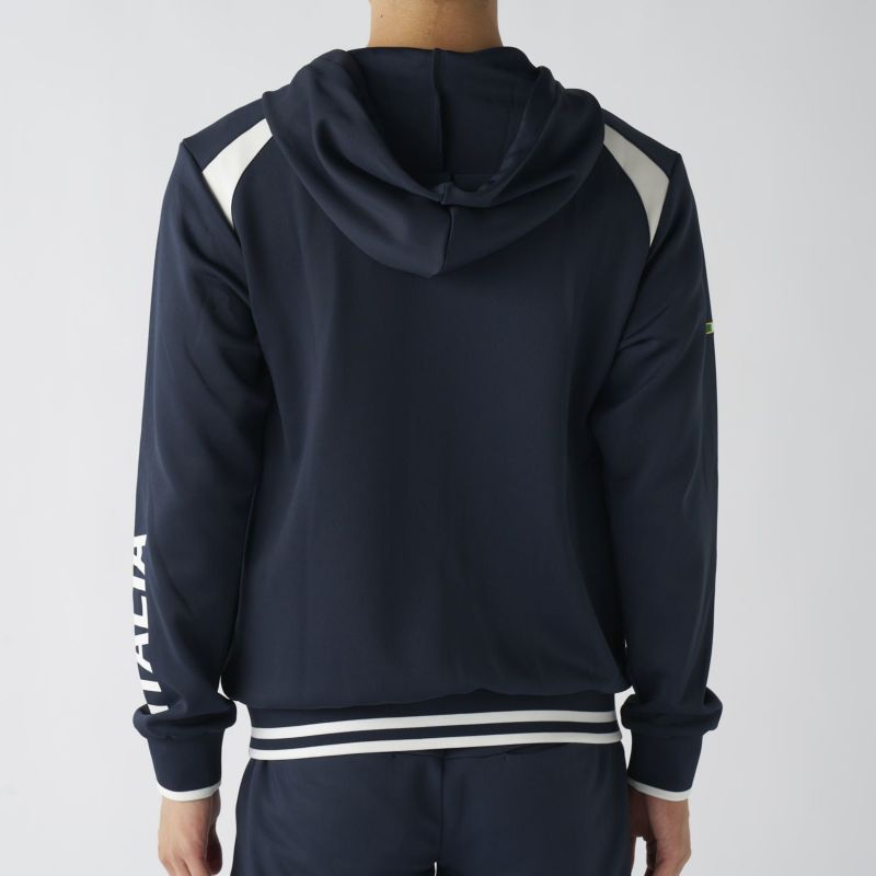 左袖に大胆に配された「ITALIA」のレタリングが印象的で、袖上部のイタリアンカラーのディテールがさりげないアクセントに◎。