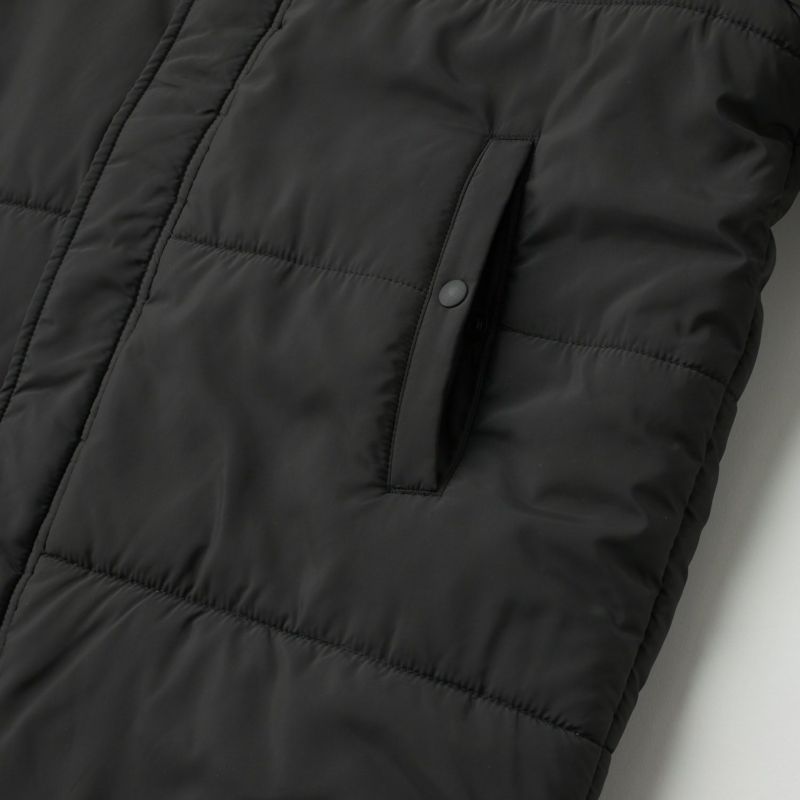お尻まで隠れるので防寒性の高いミドル丈の中綿ジャケット。