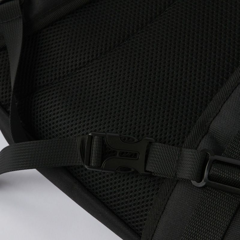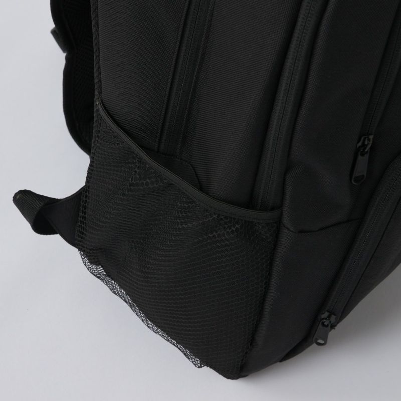 BOX型バックパック。両脇ポケット付き。背負っても疲れにくいパット入りベルト。