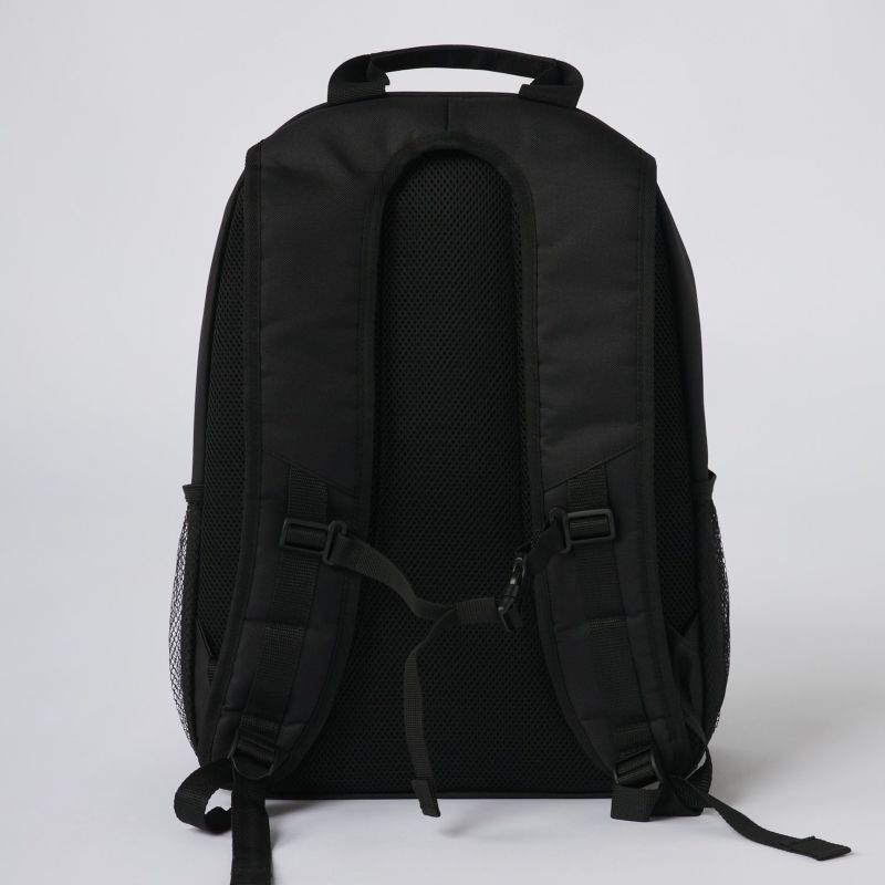 BOX型バックパック。両脇ポケット付き。背負っても疲れにくいパット入りベルト。