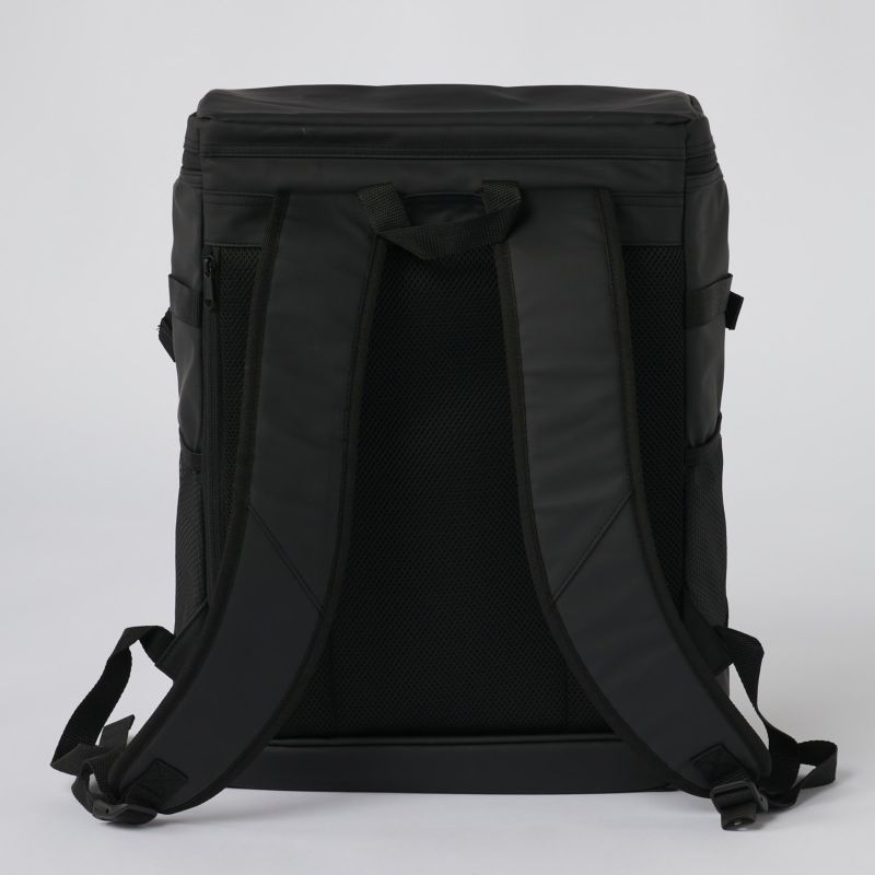 スクエア型エナメルバッグ。背負っても疲れにくいパット入りベルト。