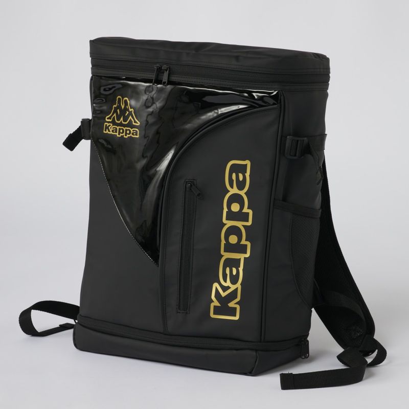 スクエア型エナメルバッグ。背負っても疲れにくいパット入りベルト。