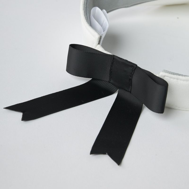 シンプルなデザインながらも、バックのリボンがキュートで存在感抜群のレディスバイザー。