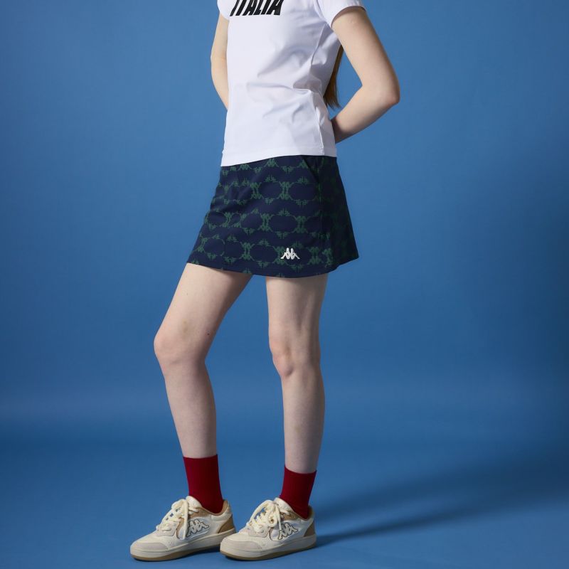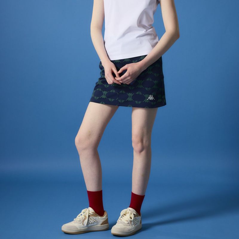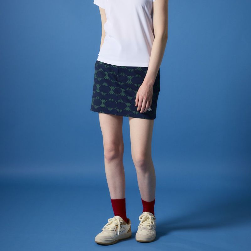 OMINIロゴをモノグラムにした特徴的な柄のスカート。トーントーンのカラー配色で合わせやすく大人っぽ いスタイリングに仕上がります。