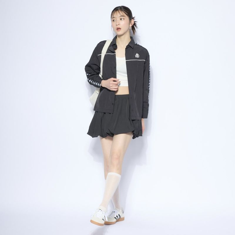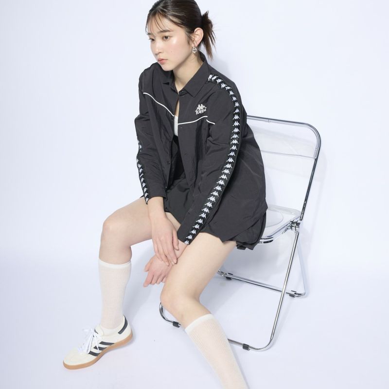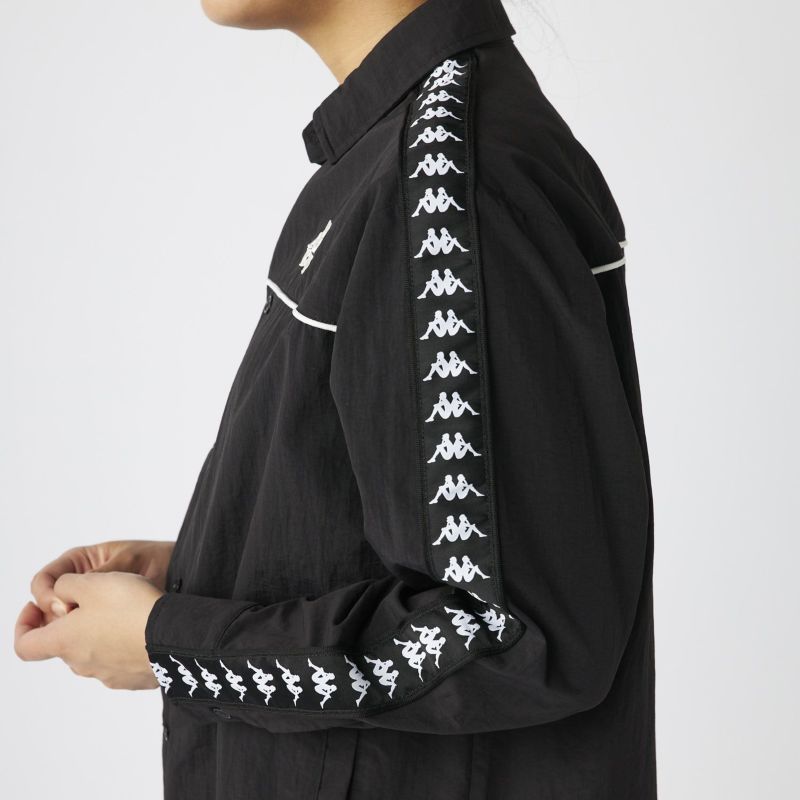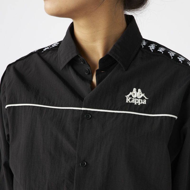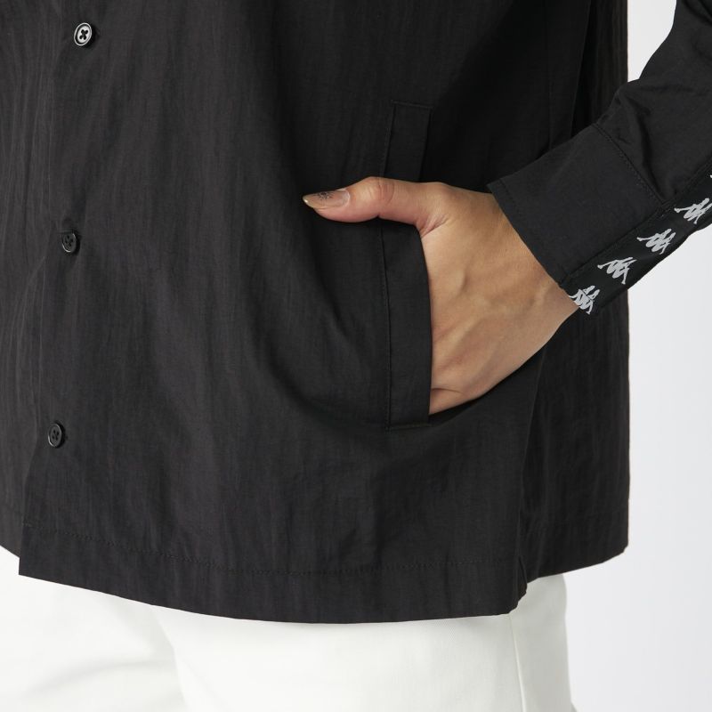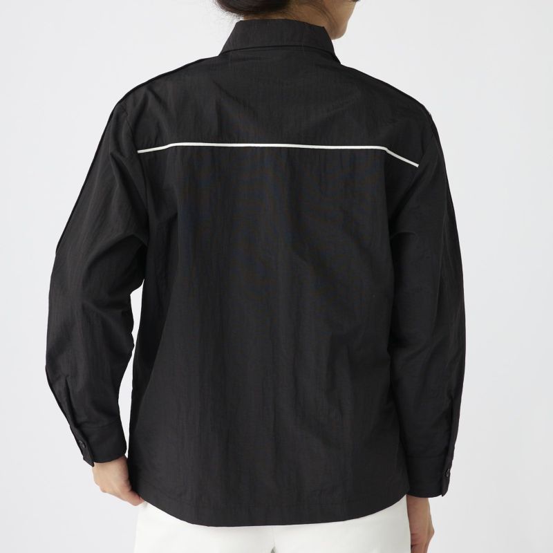 ナイロンタッサー素材を採用したテープデザインのワーク風シャツです。スタンダードなシルエットで設計して います。
