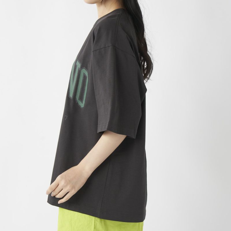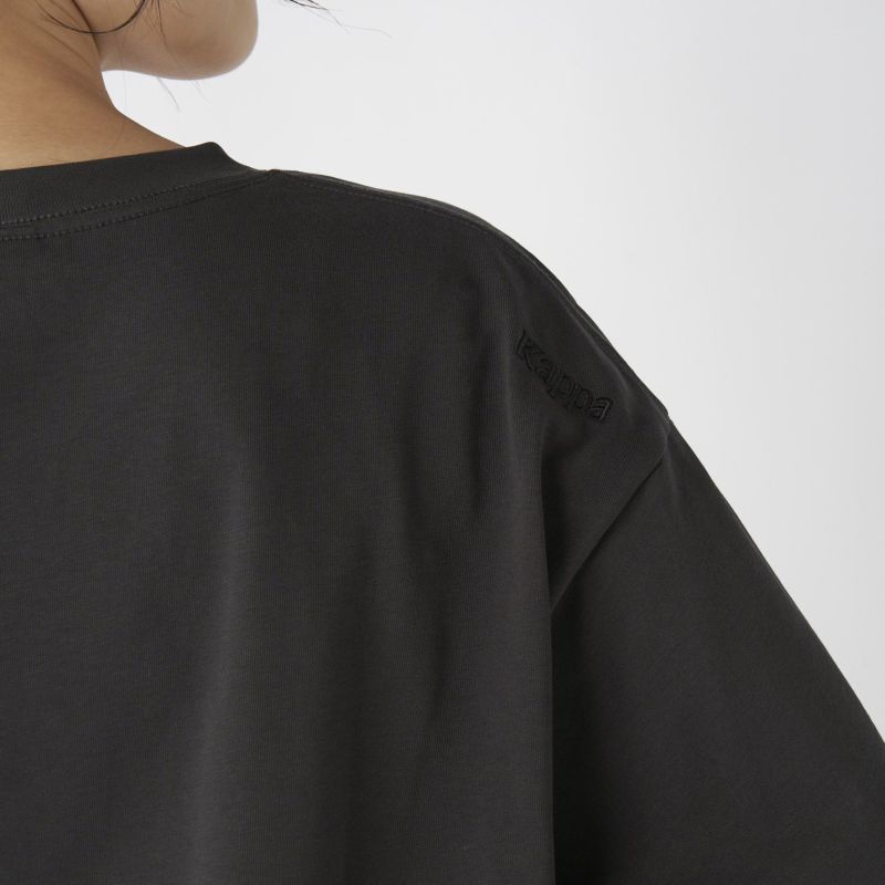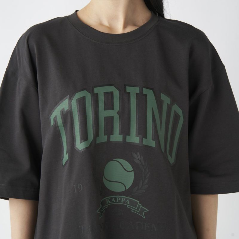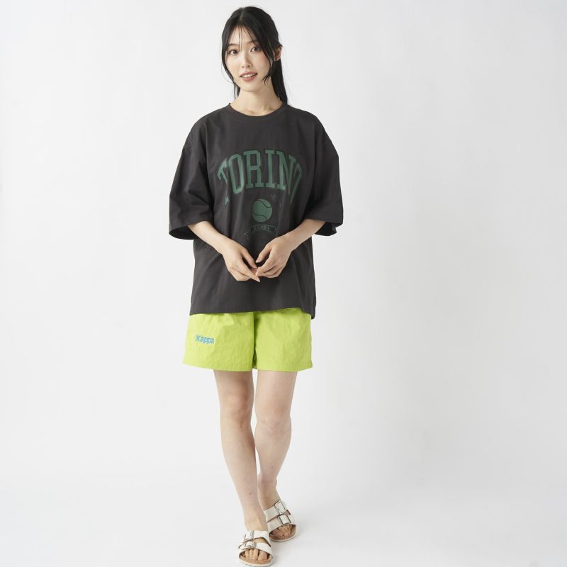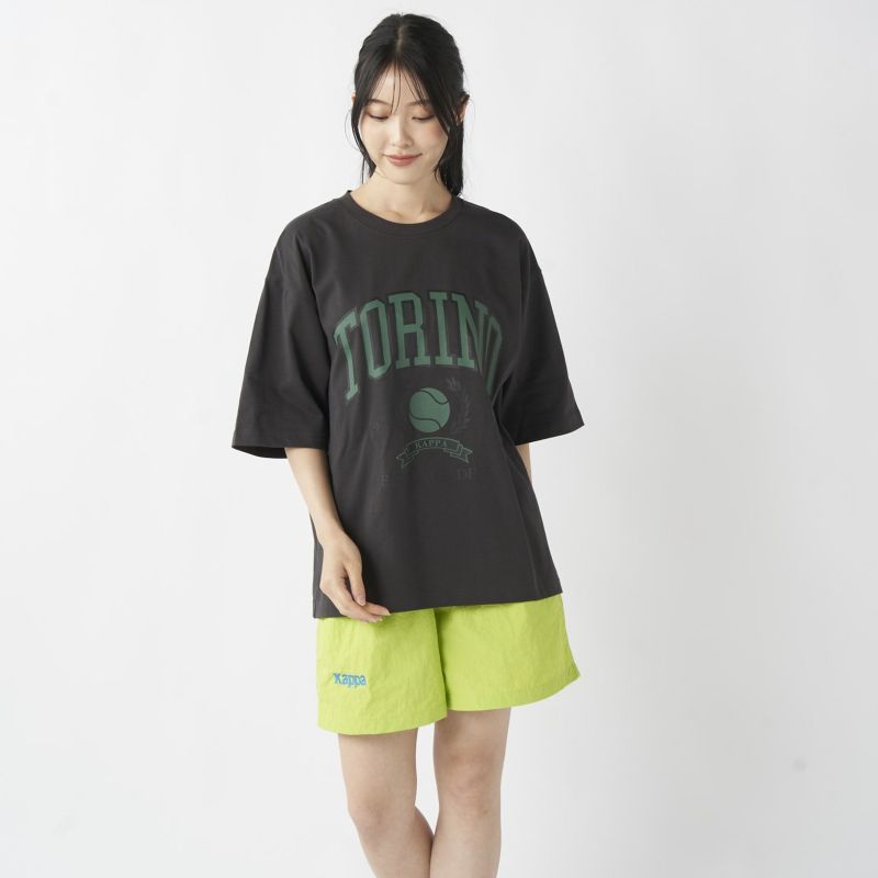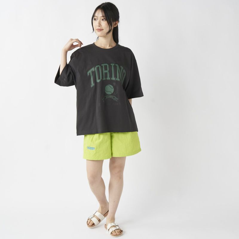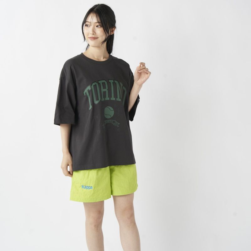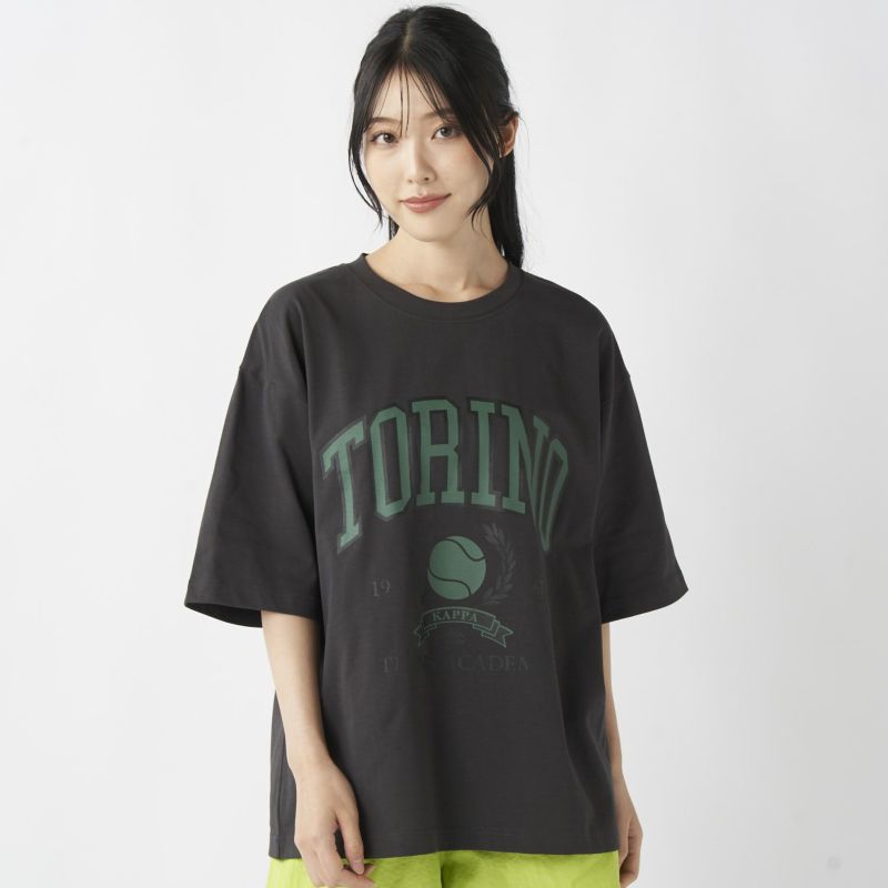 今っぽいルーズフィットのシルエットに、架空のウェルネスクラブ内テニスクラブをイメージしたグラフィックをオン。スポーツクラブ感のある遊び心が効いています。背中の右肩にはKappaのロゴを刺繍で配置。控えめながらブランドらしさを主張するワンポイントです。