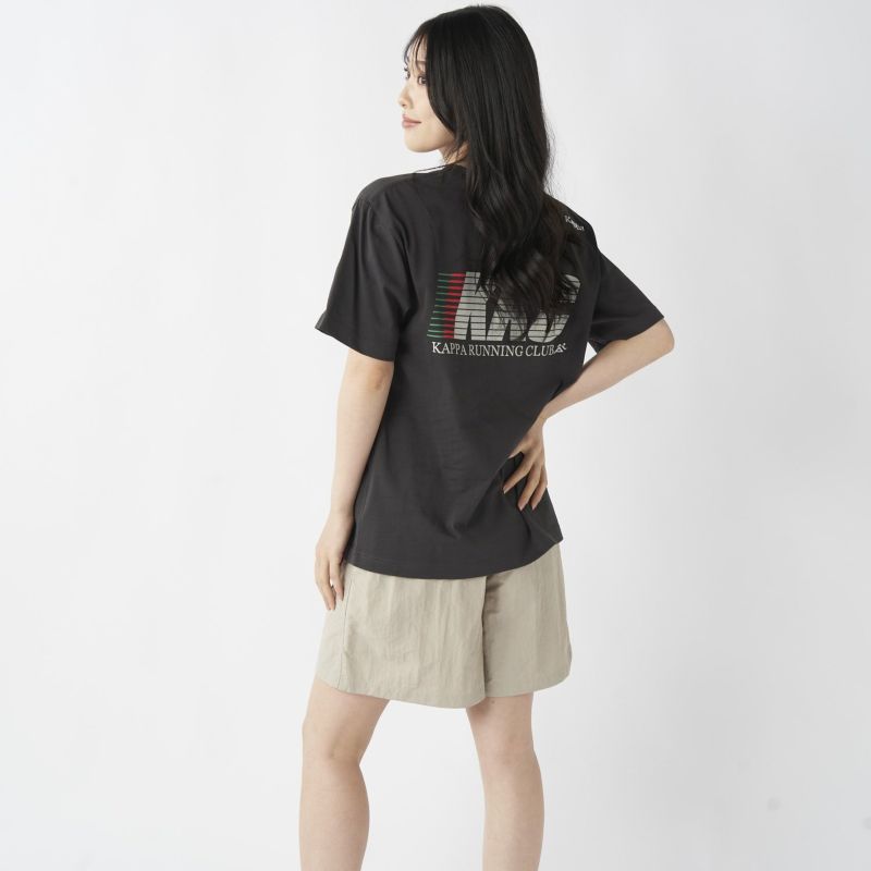 テーマは“架空のウェルネスクラブのランニングクラブ”。そのメンバーTシャツをイメージしたグラフィックをプリントし、スポーティかつ遊び心のある雰囲気に。背中右肩にはKappaのロゴを刺繍で配置し、シンプルな中にもブランドらしさをしっかり表現しています。