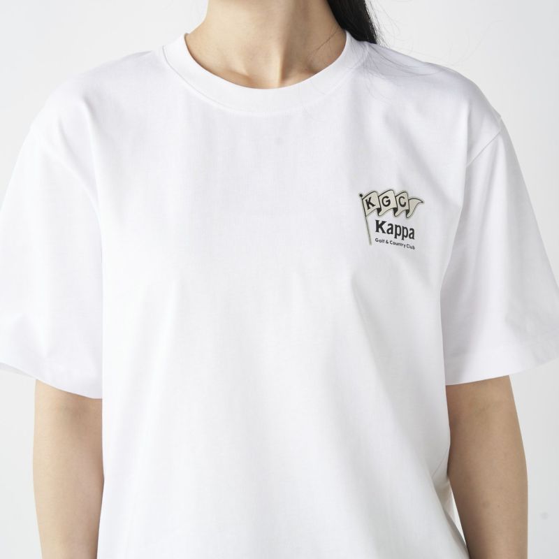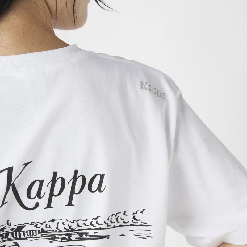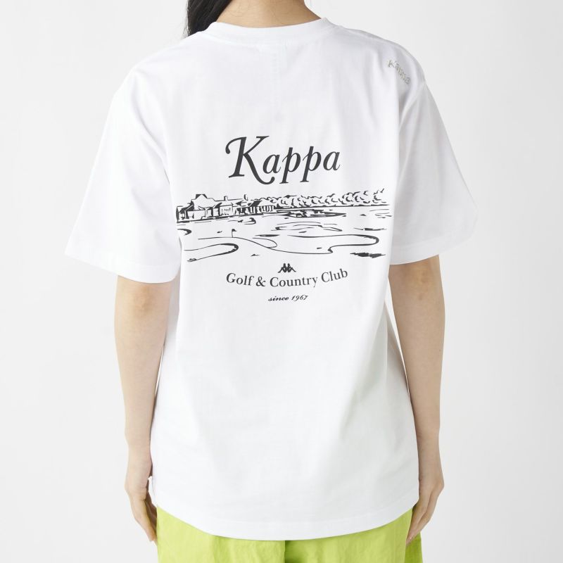 テーマは“架空のウェルネスクラブ・ゴルフクラブ”のメンバーTシャツ。落ち着いたクラブカルチャーを感じさせるグラフィックで、シンプルながら大人っぽい雰囲気に仕上げています。背面右肩にはKappaのブランドロゴを刺繍で配置。控えめながら存在感のあるアクセントです。