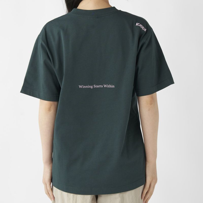 ブランドを象徴するKappaのロゴをフロントに配した、まさに定番的な一枚。背中には「WinningStartsWithin」のメッセージをさりげなくプリント。シンプルながらプリントカラーにもこだわり、ベーシックで長く着られるデザインに仕上げています。さらに、背中右肩にはコレクション共通のKappaロゴを刺繍でオン。細部までブランドらしさを感じさせる仕上がりです。