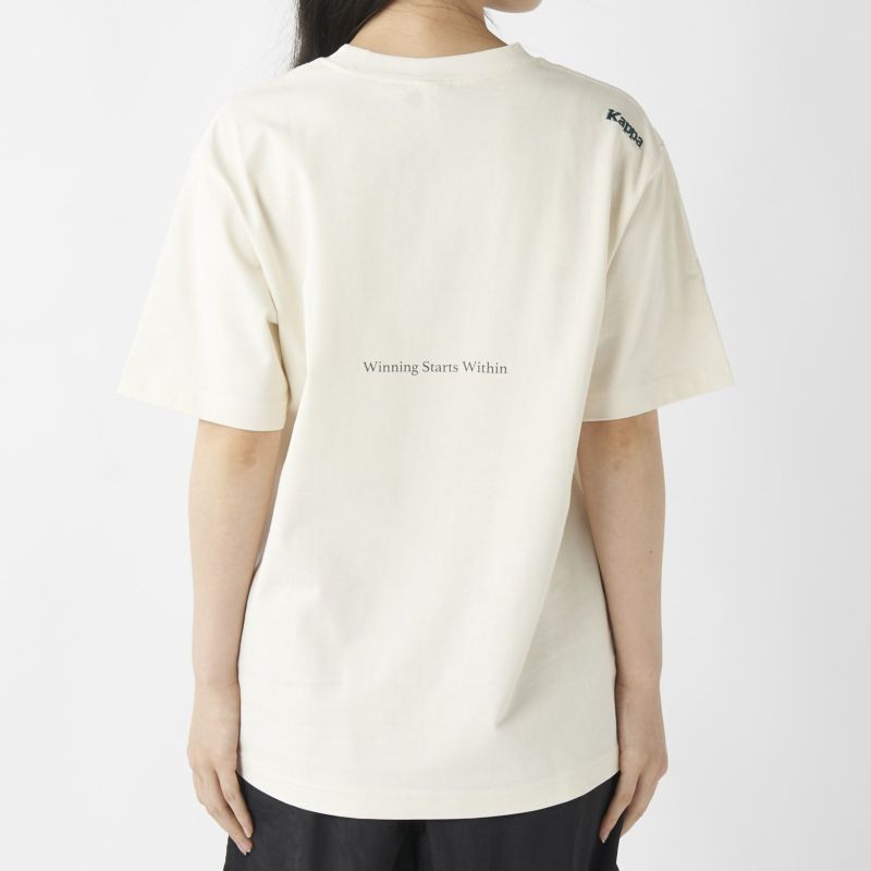 ブランドを象徴するKappaのロゴをフロントに配した、まさに定番的な一枚。背中には「WinningStartsWithin」のメッセージをさりげなくプリント。シンプルながらプリントカラーにもこだわり、ベーシックで長く着られるデザインに仕上げています。さらに、背中右肩にはコレクション共通のKappaロゴを刺繍でオン。細部までブランドらしさを感じさせる仕上がりです。