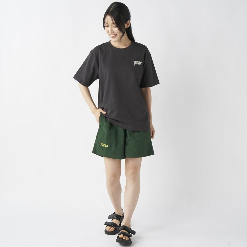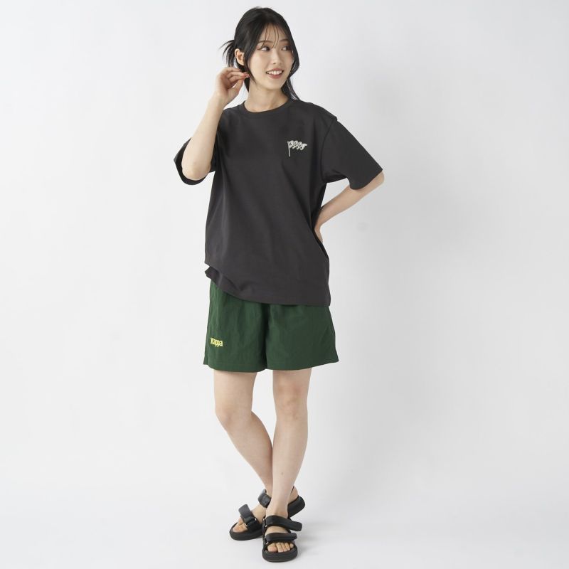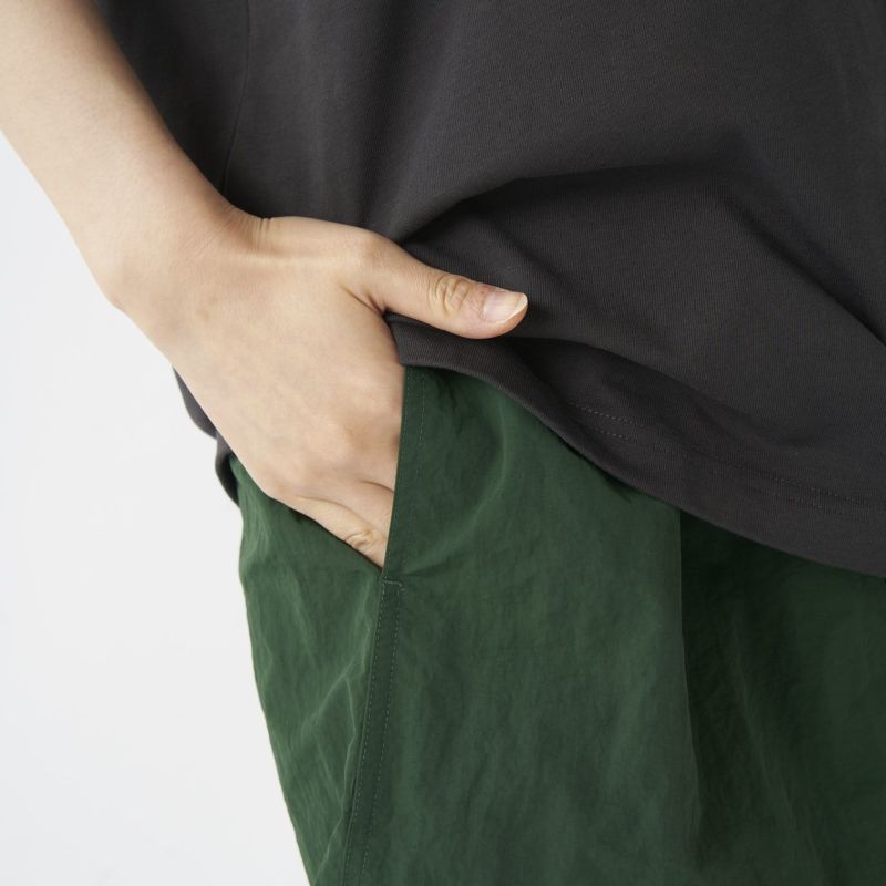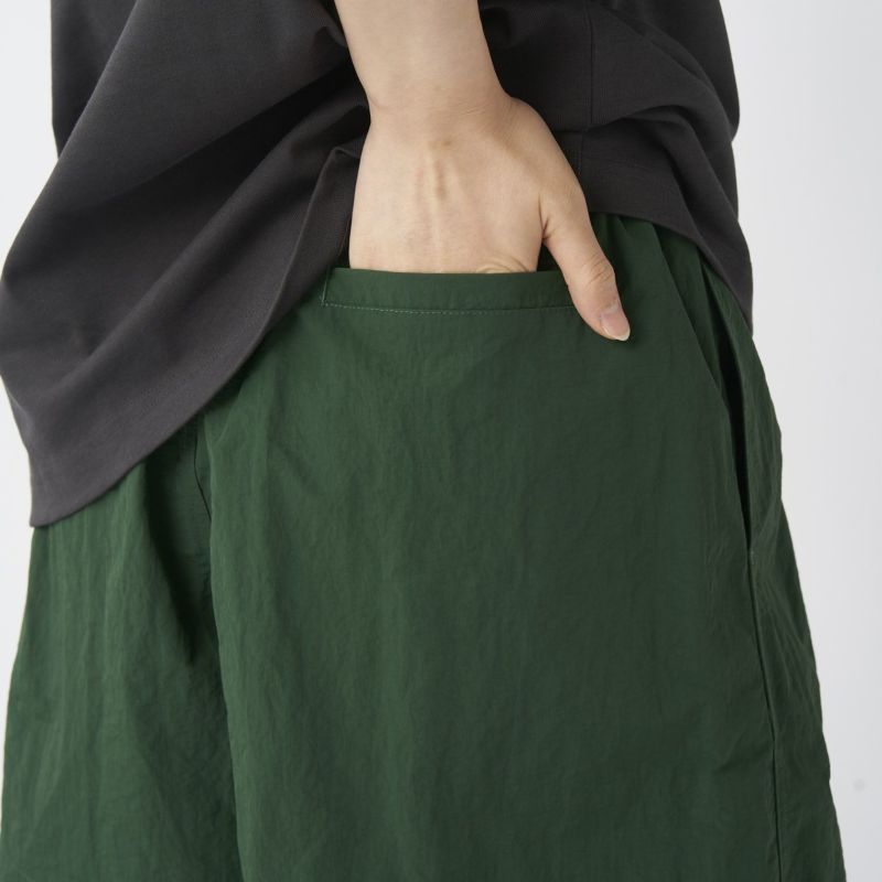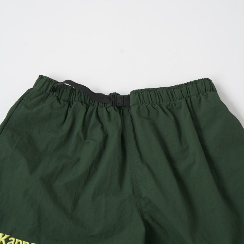 裏地は100%ポリエステルのメッシュインナー付き。ゆったりしたシルエットにゴムウエストというイージー仕様の水陸両用ショートパンツ。ウエストゴムはフロントにアタッチメントとアジャスターが付いており必要に応じて調整が可能です。両サイドのスリットポケット、ジップ付きのバックポケットを完備。